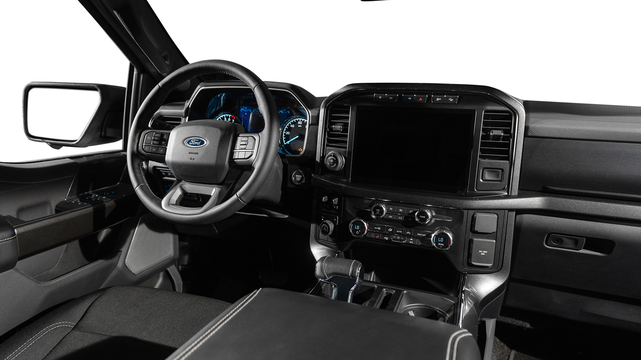 A new fully digital instrument cluster gives the F-150 a much more modern look. The available 12.0-inch unit displays key information such as speed, gear selection, and even off-roading data. When navigation is engaged, it will show turn-by-turn directions. The gauge cluster features unique graphics and animations that change depending on the drive mode. Alas, the setup isn't standard across the board, and lesser F-150s make do with a 4.0-inch cluster screen.