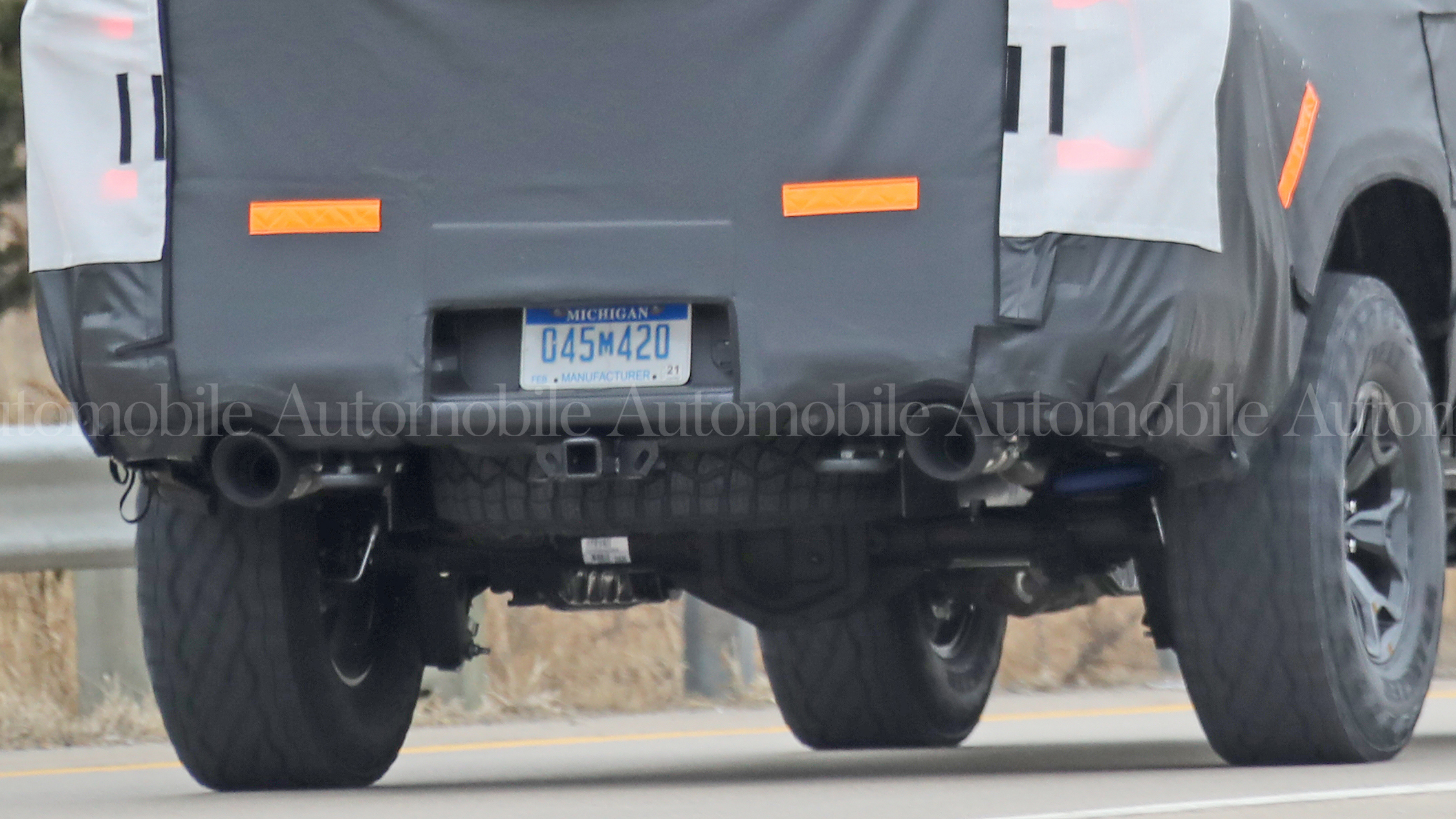 Helping the truck cast an aggressive mien will be an updated front clip. Visible on the spy truck are additional vents to provide cooling for the massive supercharged V-8. A bulging hood likely boasts an air intake or heat extractors—the former would help off-road performance by increasing wading depth. Those aforementioned 35-inch tires (which likely will be Goodyear Wrangler Duratracs or BFGoodrich All-Terrain T/A KO2s) likewise butch up the appearance and stance significantly.
