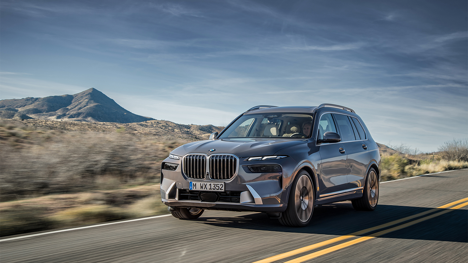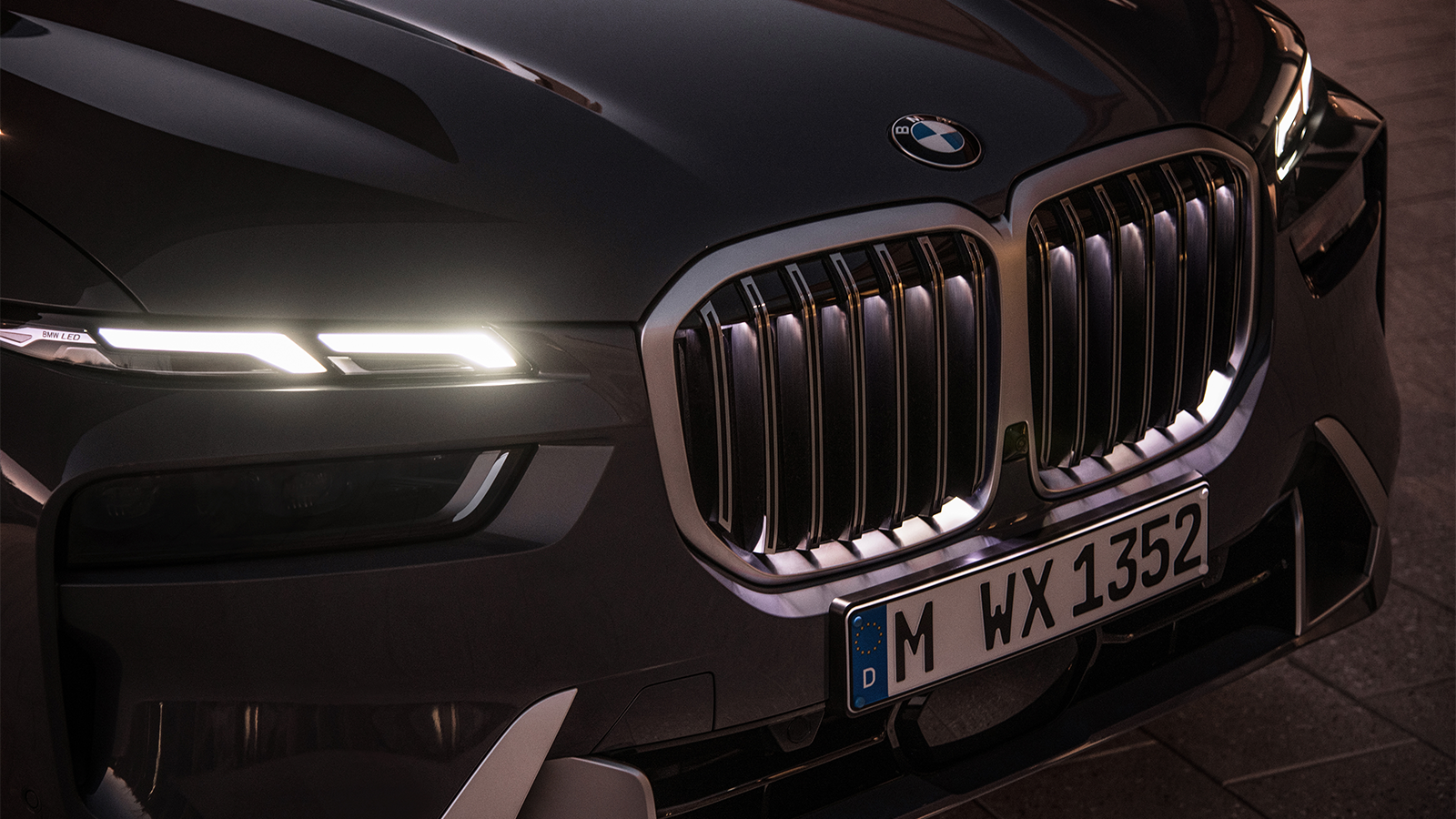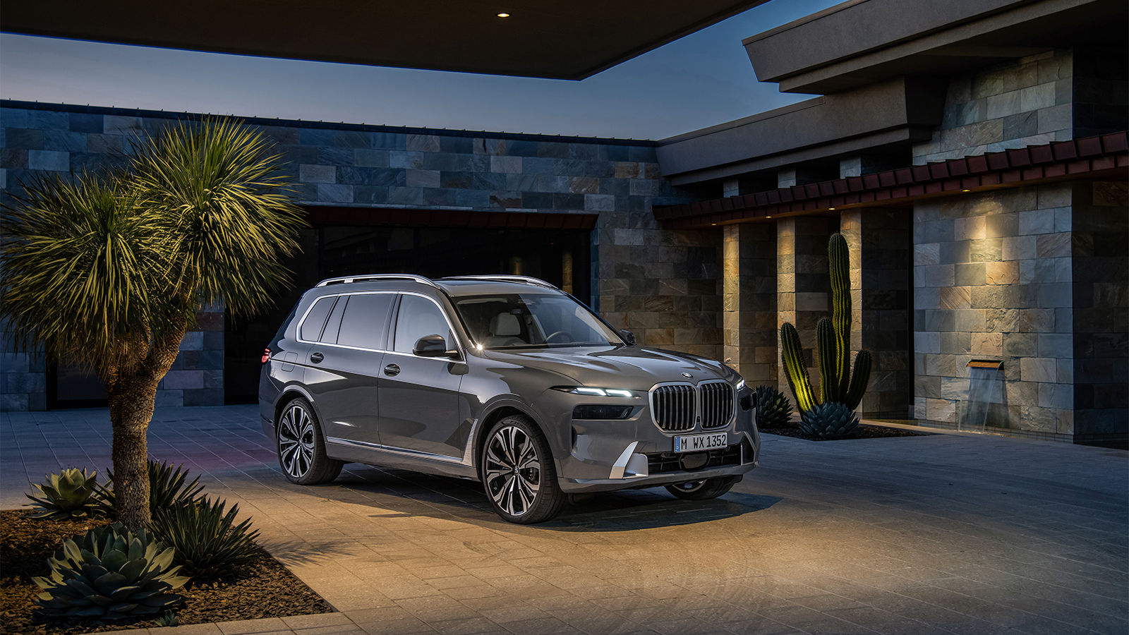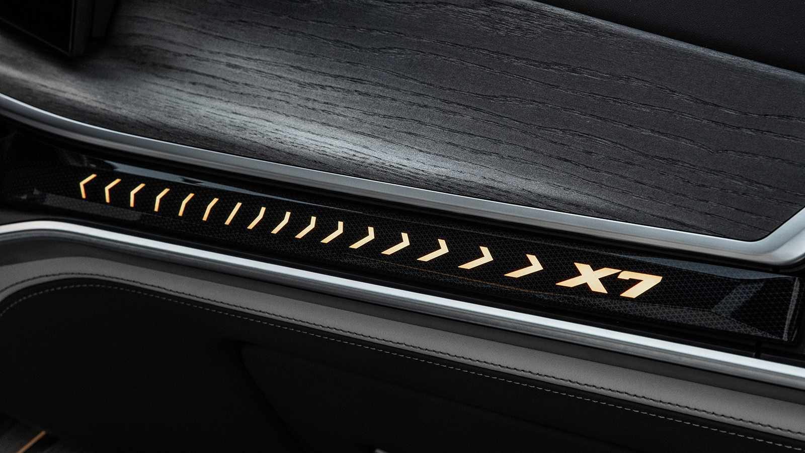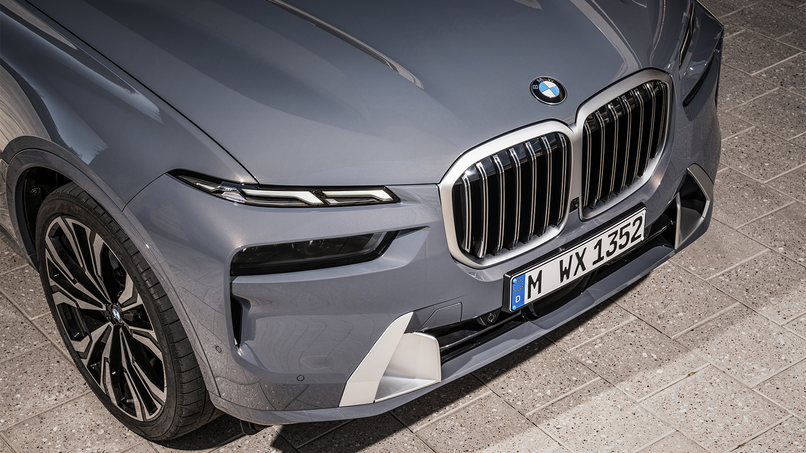 Inspired by the recent XM SUV concept, the X7 features split headlights and a glowing kidney grille.