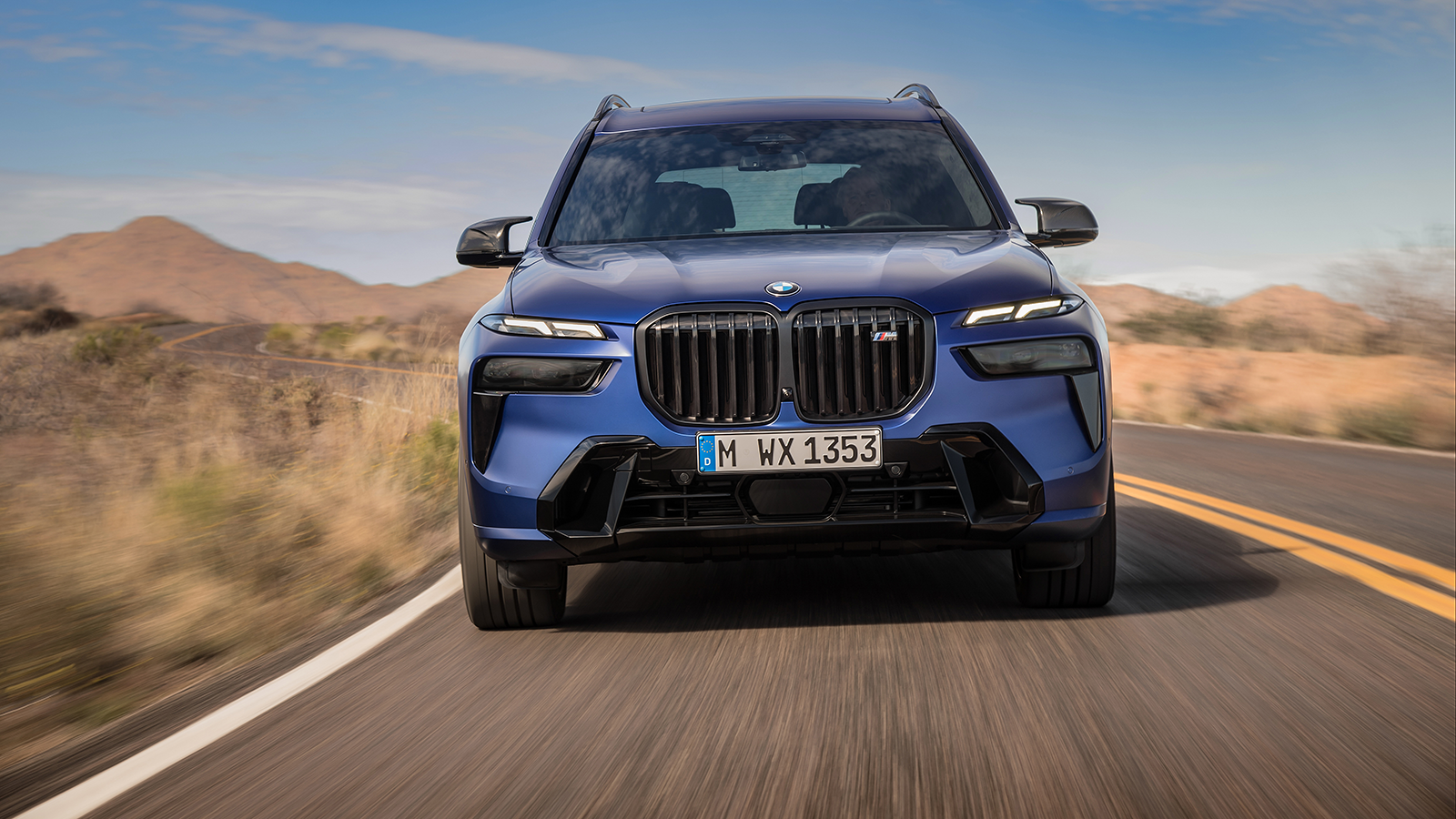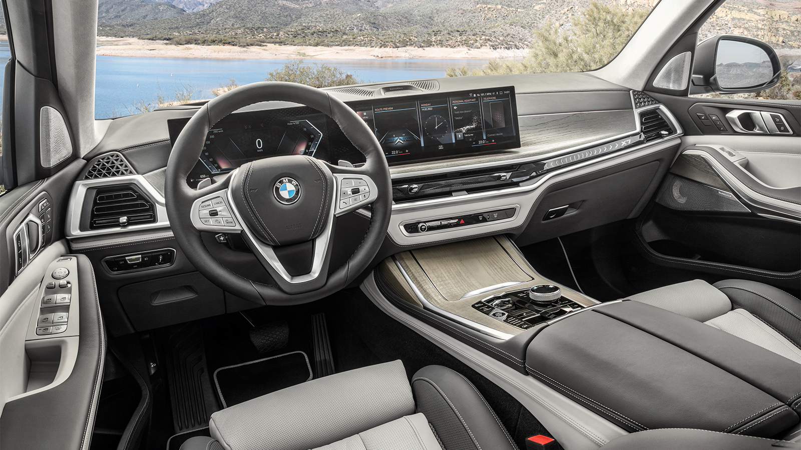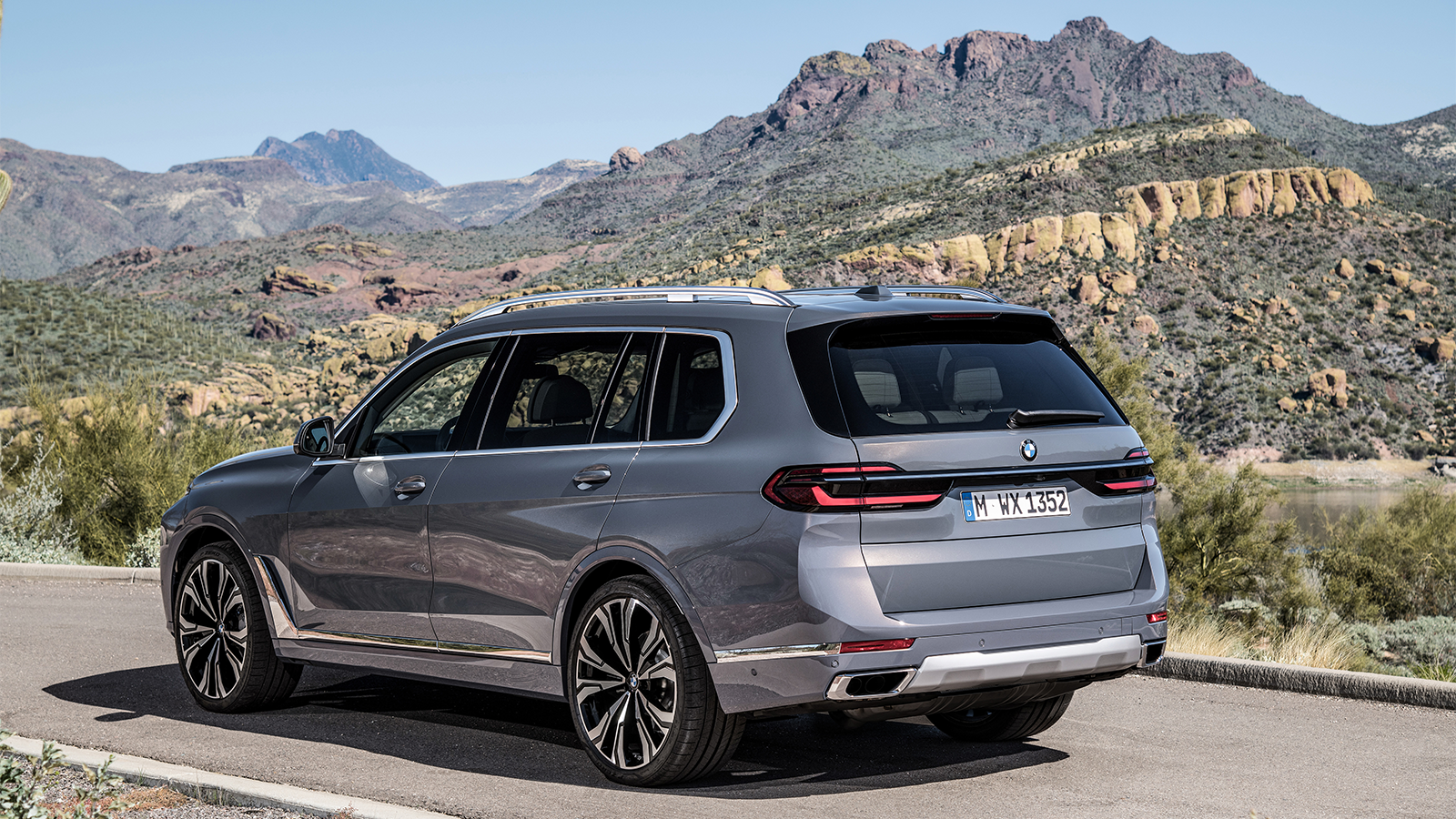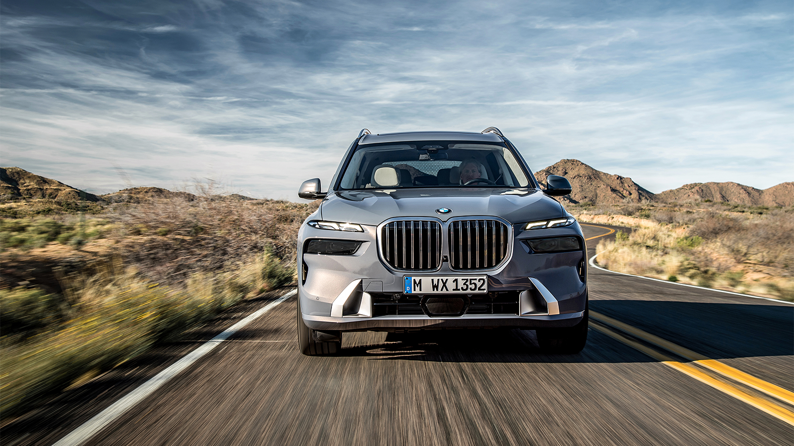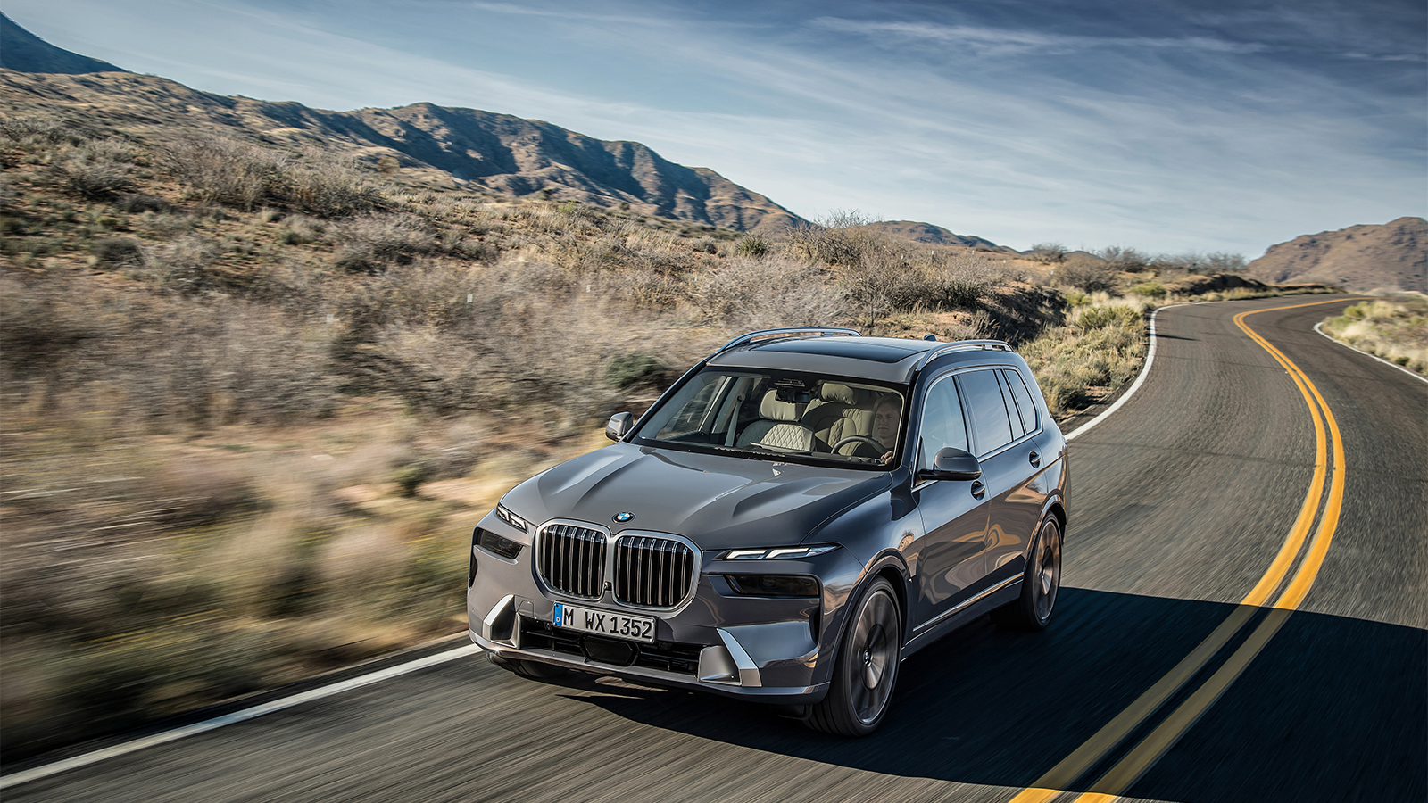 Inspired by the recent XM SUV concept, the X7 features split headlights and a glowing kidney grille.
