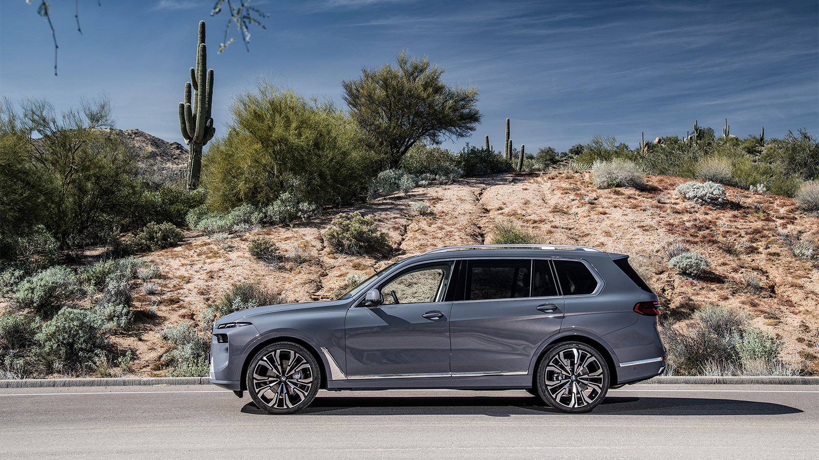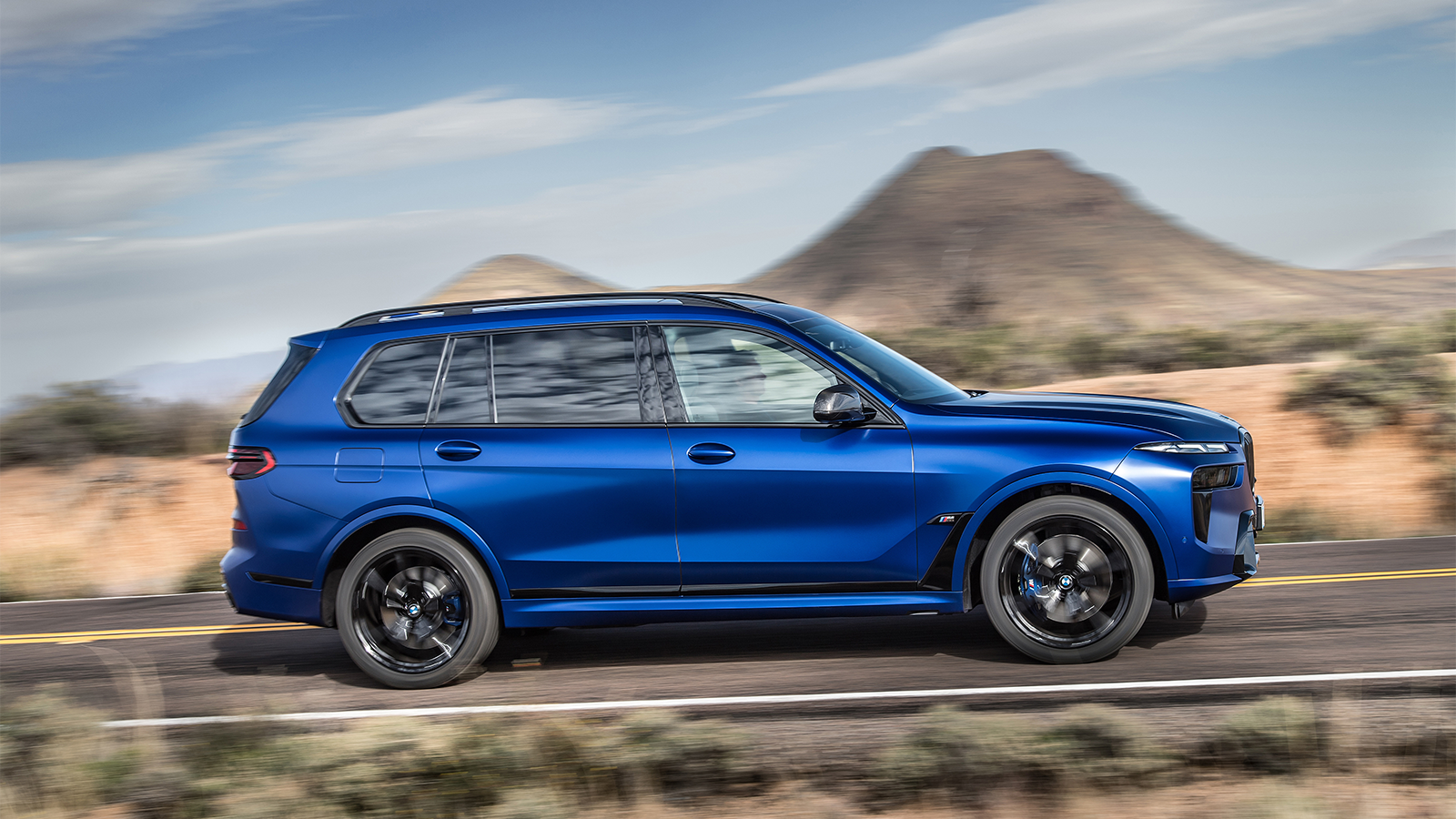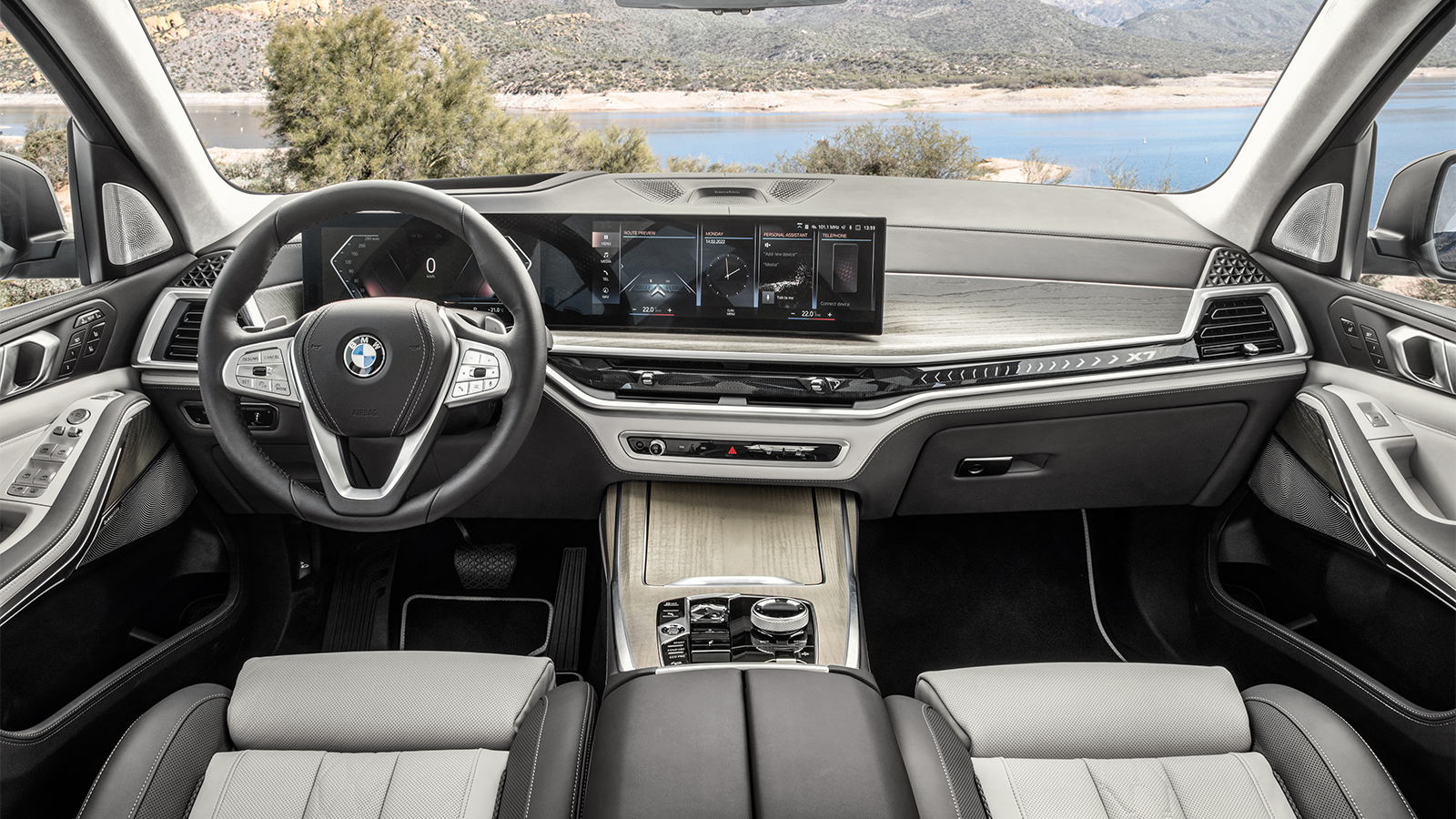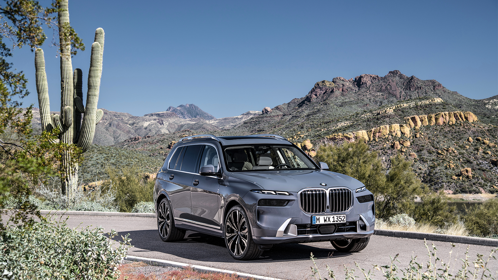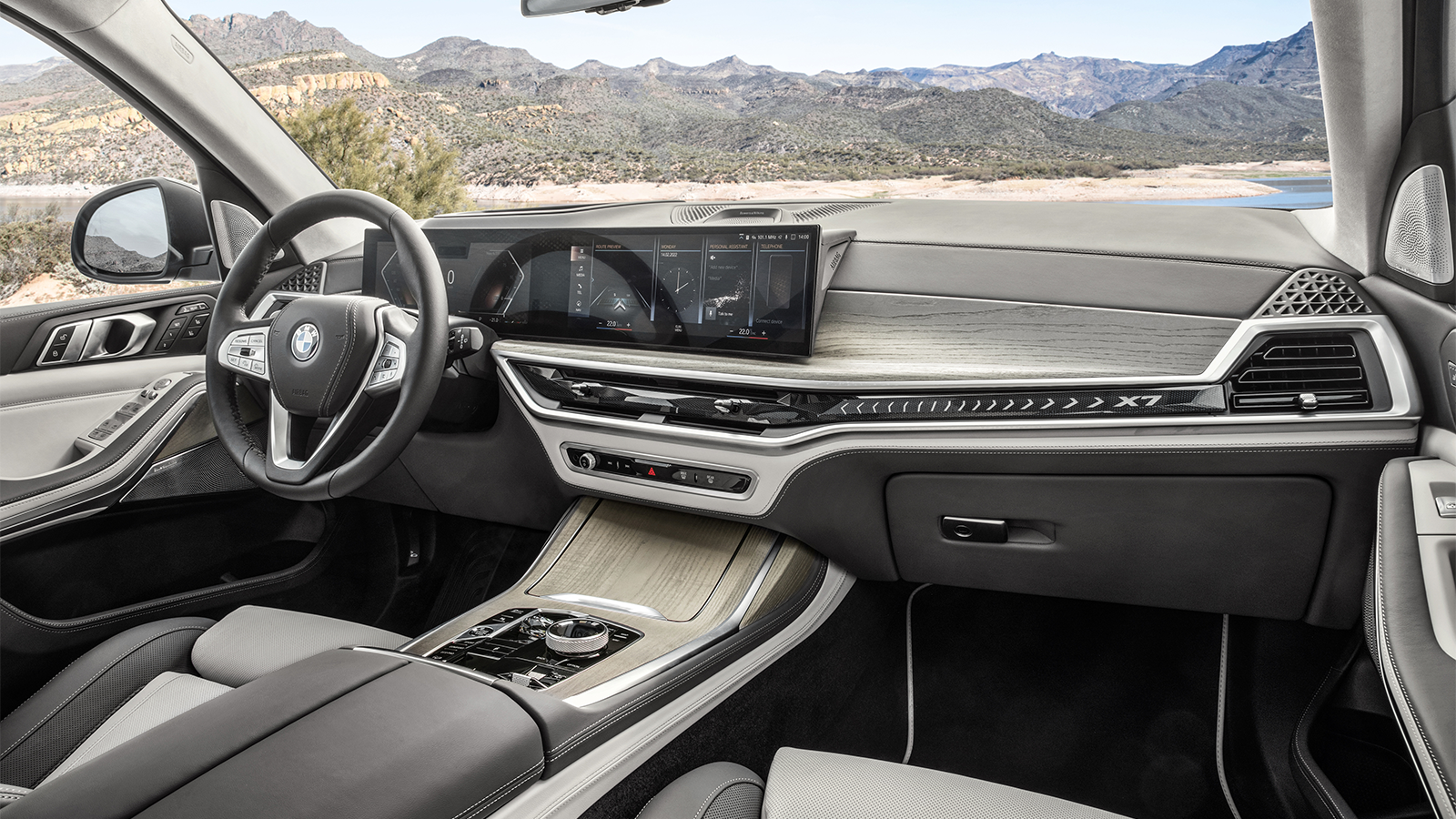 Inspired by the recent XM SUV concept, the X7 features split headlights and a glowing kidney grille.