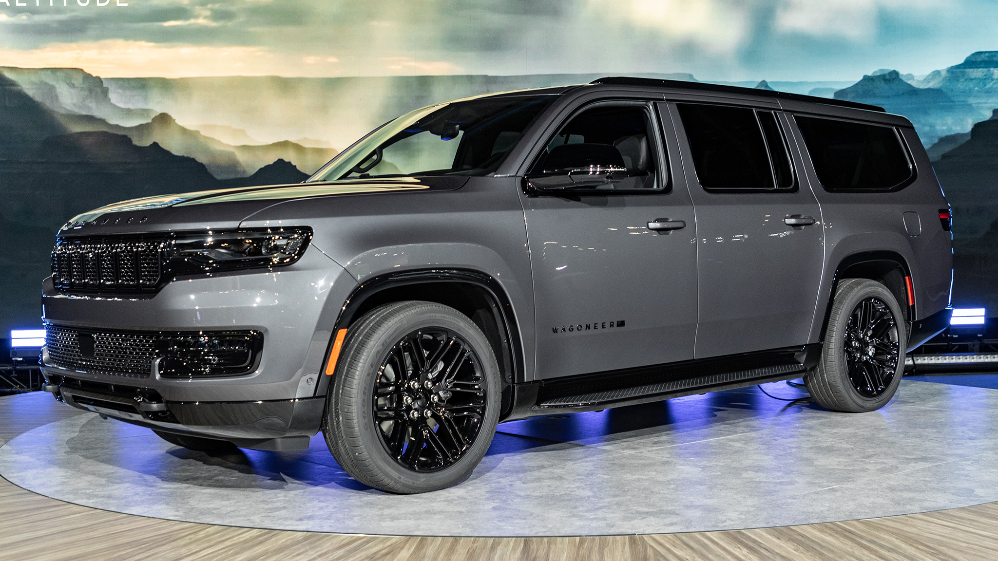 Jeep showed us a 2023 Wagoneer L in the new Carbide trim, which is the blacked-out equivalent of the Obsidian trim on the Grand Wagoneer. We saw a preview of a 2023 Wagoneer L Carbide in Baltic gray with a glossy black face and wheels, tri-pane sunroof, and a black roof rack. Inside are some new trim materials, a black headliner, and smoke accent stitching on the black seats, doors, and instrument panel. The Carbide package will be offered on the 2023 Wagoneer and Wagoneer L in the second half of the year but will also be made available on the 2022 short-wheelbase Wagoneer this spring.