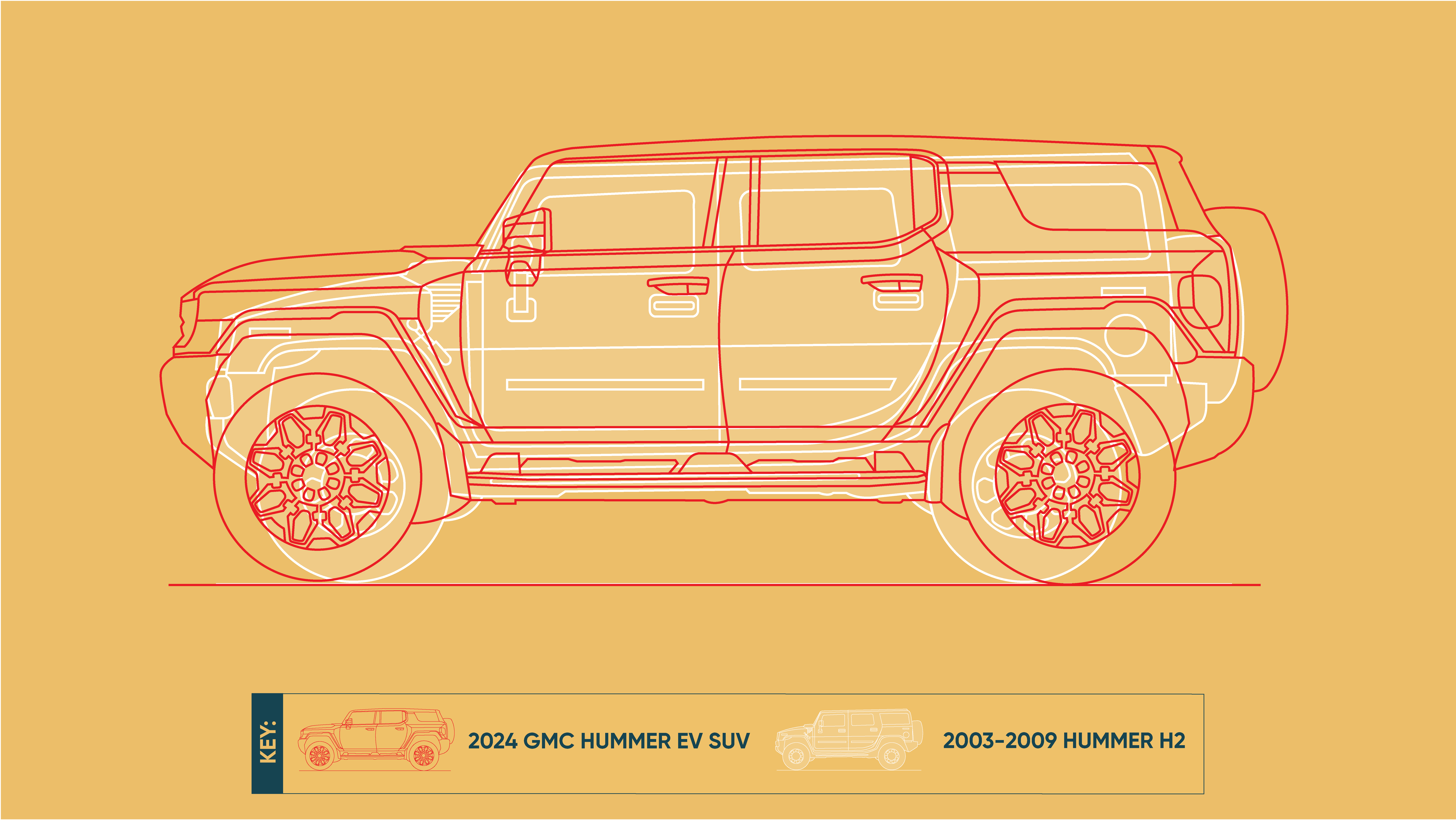 The 2003–09 H2 was GM's last full-size Hummer. The new GMC Hummer is bigger.