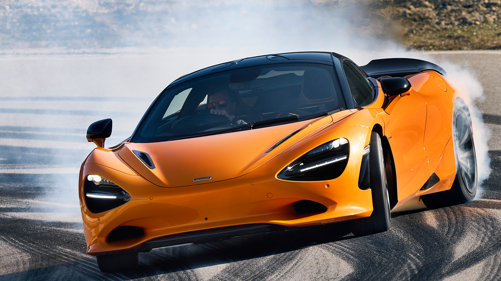 The engine drives through the same seven-speed dual-clutch transmission as in the 720S, but the final drive is 15 percent shorter, the crown wheel made from a nickel chromoly alloy used in Formula 1. The spent hydrocarbons exit via a new central-exit stainless steel exhaust system that's almost five pounds lighter than the old 720S system and has been tuned to amplify the 4th and 8th order acoustics from the flat-plane crank V-8 to deliver a more thrilling sound at high revs.