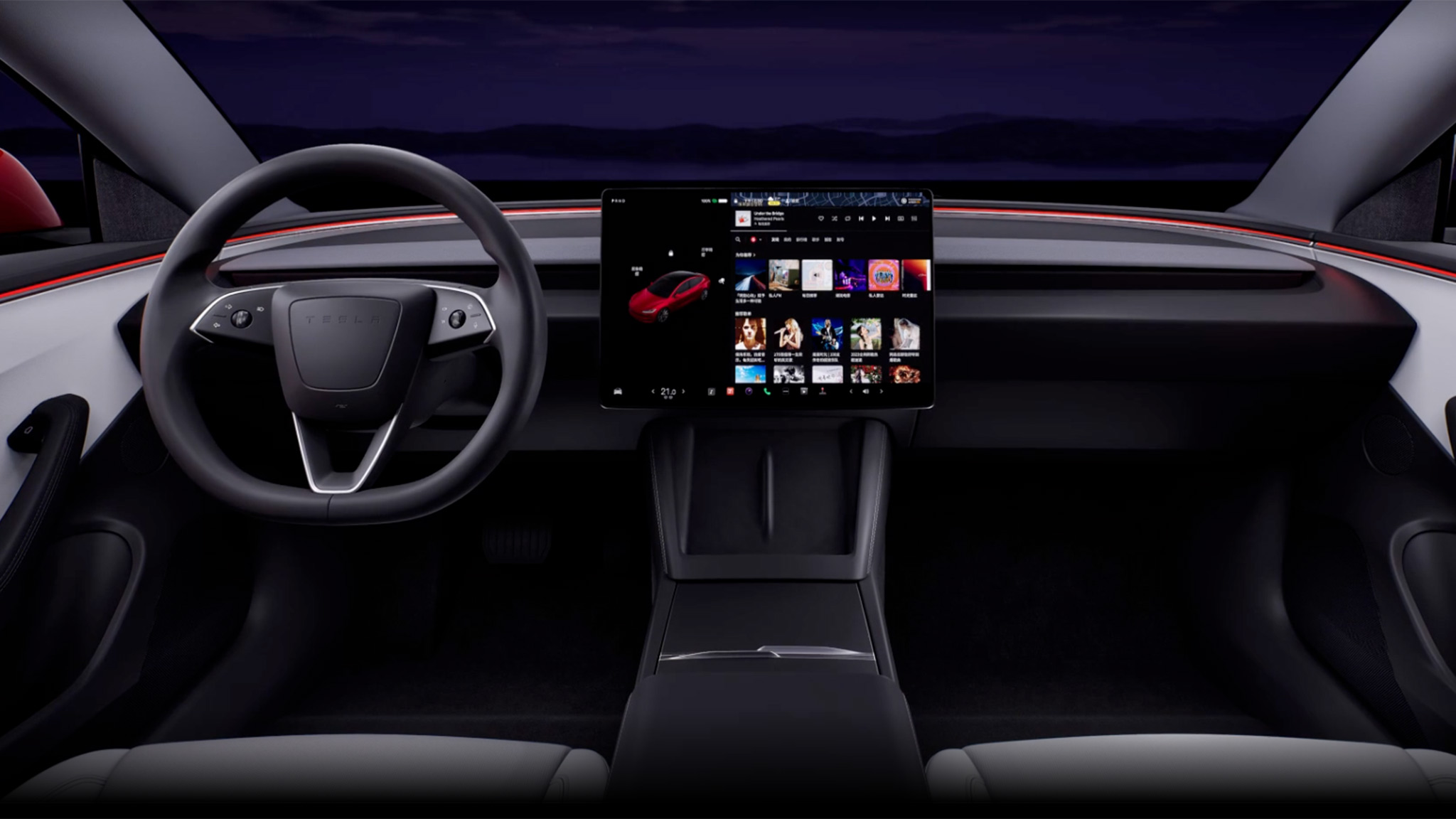 Before we start, we should point out a major assumption: That the Chinese-market Model 3 Highland will be essentially the same as the version soon to debut for America. (Give or take some minor differences to account for the wildly different markets, of course, but like before, we expect Model 3s sold globally to closely resemble one another.) Now, with that, let's dive into the new interior, which seems to adopt a number of aesthetic and material upgrades, namely new door panel upholstery and wraparound LED ambient lighting, that lessen the current 3's austere cabin vibe somewhat.