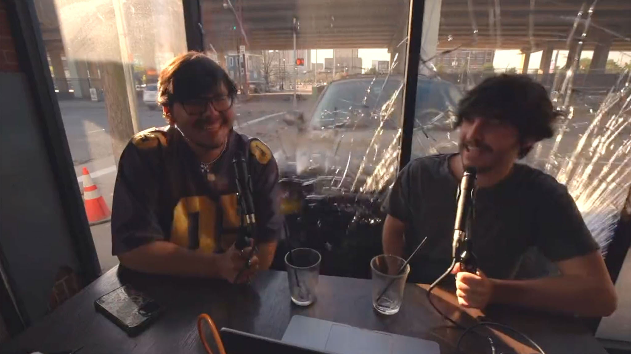 One way to make your podcast more interesting? Have a Chevy crash through it.