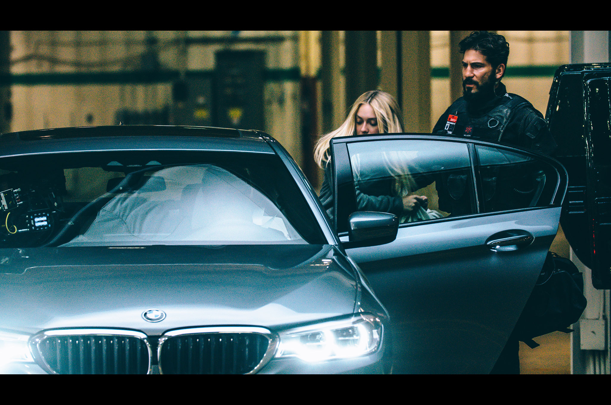 The short film, which runs roughly 13 and a half minutes, begins with some TV news clips that help set up the story. We're introduced to a company called MolGen that has apparently been illegally experimenting with cloning. The company's evil plans have been exposed and now private security forces have been hired to destroy evidence and deliver the last "specimen," played by Dakota Fanning, to an unknown customer. With the FBI banging down the door, one of the private security mercenaries, played by Jon Bernthal of "The Walking Dead" fame, forcibly takes Fanning's character out back for transport. It's here that we see the new 5 Series, a 540i model, with none other than Clive Owen at the wheel.