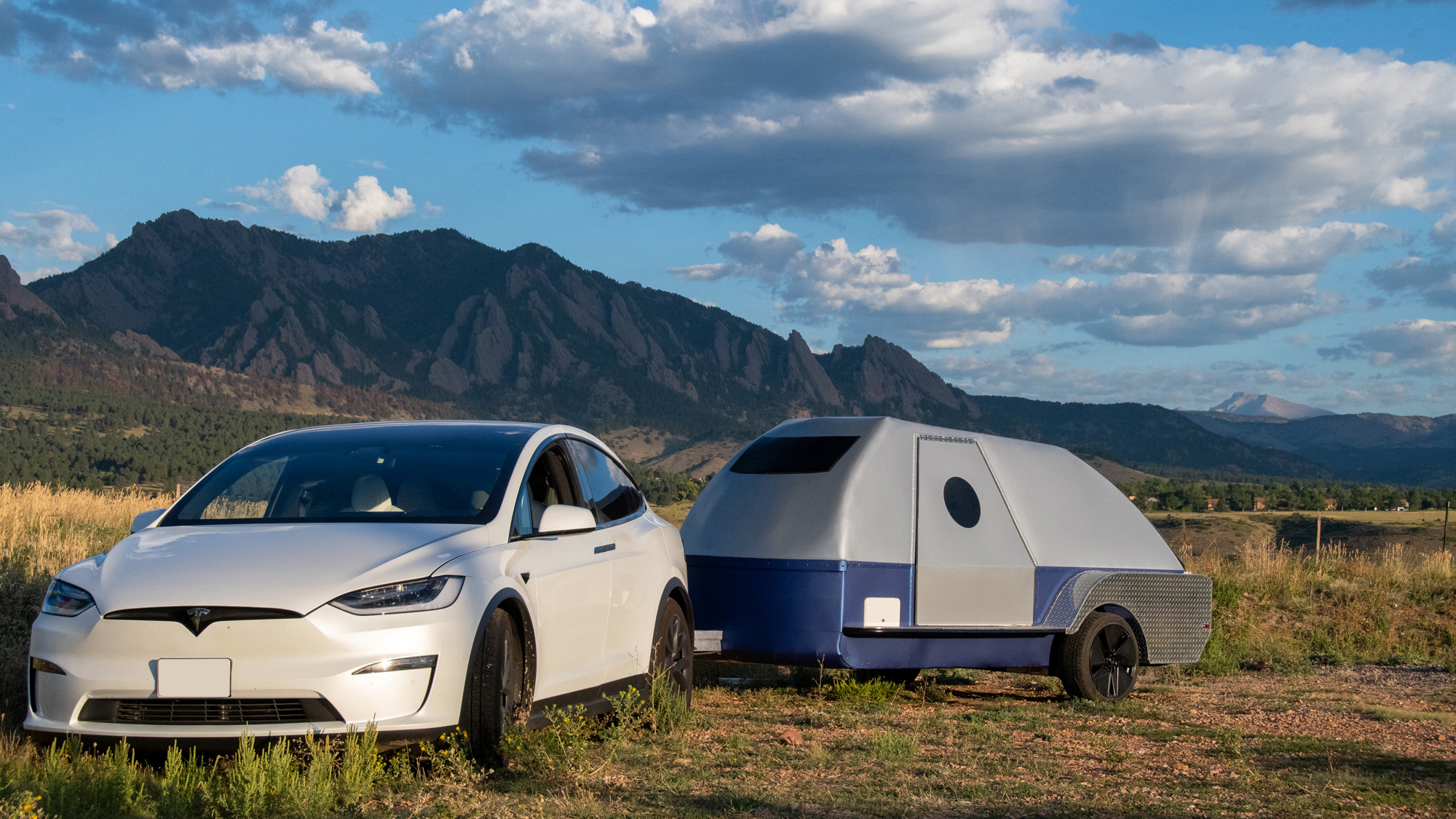 The Boulder (12-feet long), The Golden (17-feet), and The Denver (27-feet) will have battery capacities of 75 kWh, 125 kWh, and 200 kWh, respectively, with the battery banks built into the trailer frame. At home or at a charging station, users would charge both the EV tow vehicle and the trailer. By plugging the tow vehicle into the trailer, the trailer's auxiliary battery power would recharge the EV vehicle to match (or beat) pre-towing range. Basically, the EV wouldn't get "dinged" for towing. Currently, the trailers can't charge while the tow vehicles are moving, but that may change in the future.