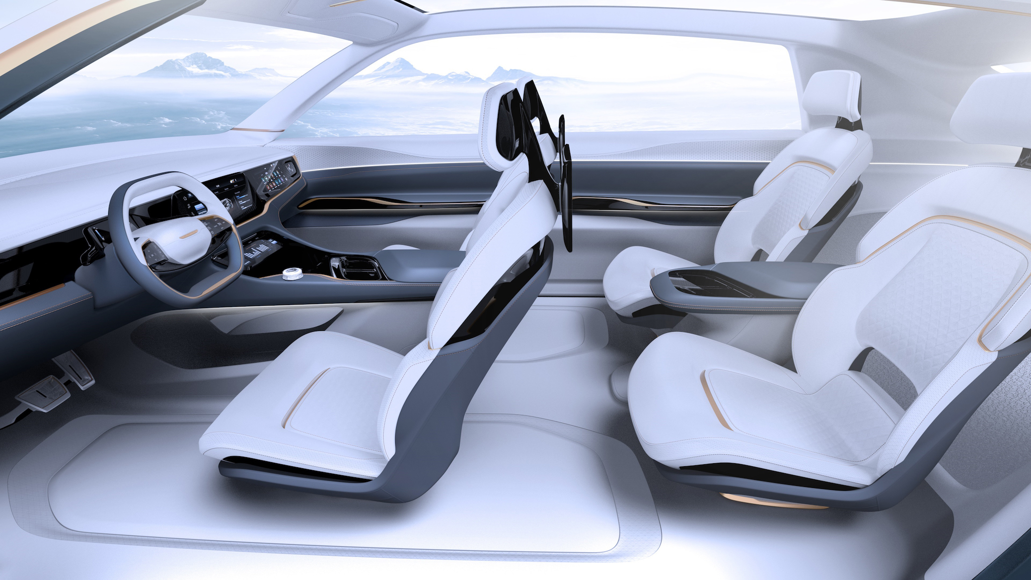 A multiscreen interface and customizable lighting will democratize the interior, probably.