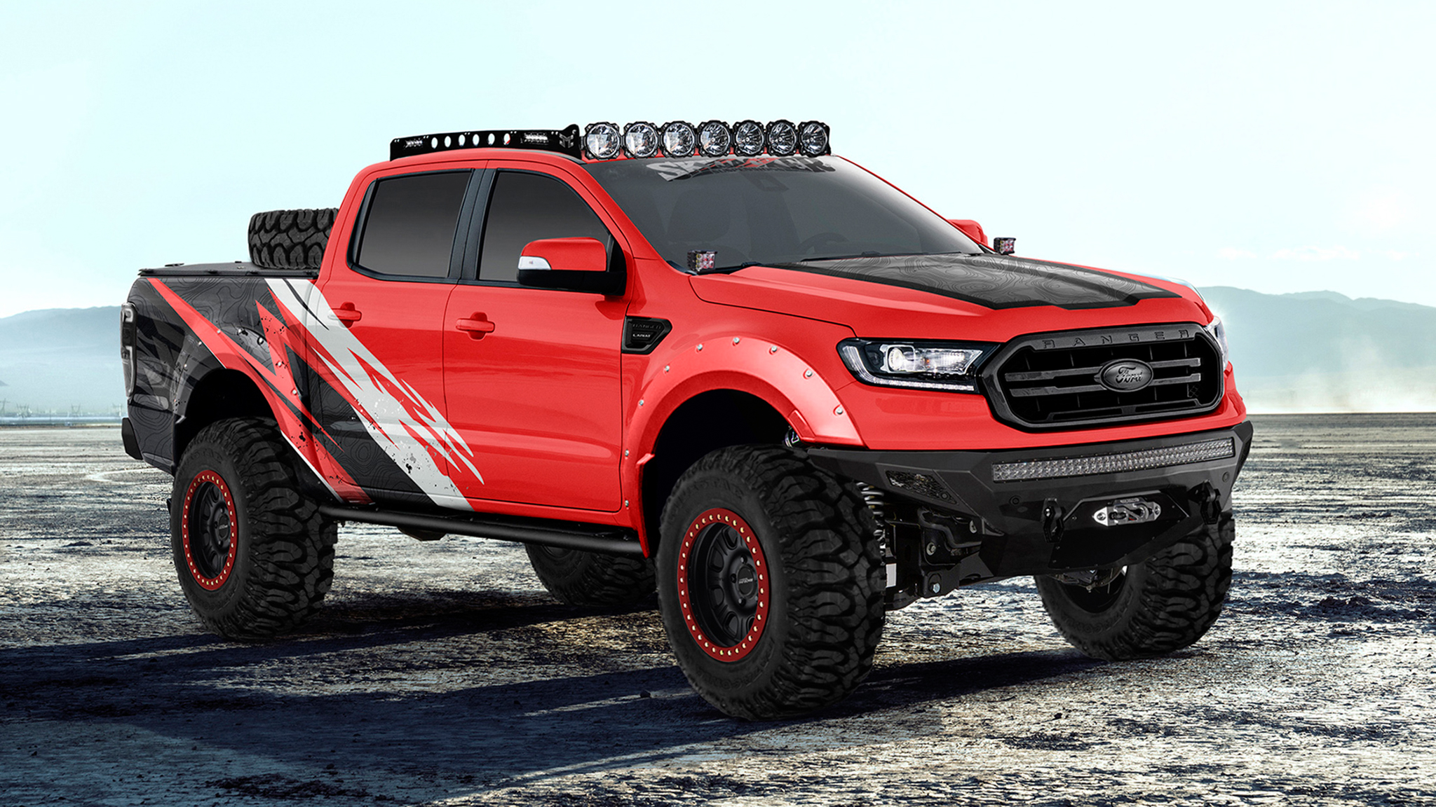 Going off-roading where no path has been carved for you? Then the Skyjacker 2021 Ford Ranger is your answer to those extremes. Sporting a 6-inch lift from Skyjacker, the ground clearance and approach angles have been enhanced further with front and rear off-road bumpers. Also sitting right at home in the front bumper is a Warn winch to unstick yourself (or a buddy). A pair of rock sliders protecting the rocker panels from boulder damage also gives you a leg up to get in this lifted Ranger.