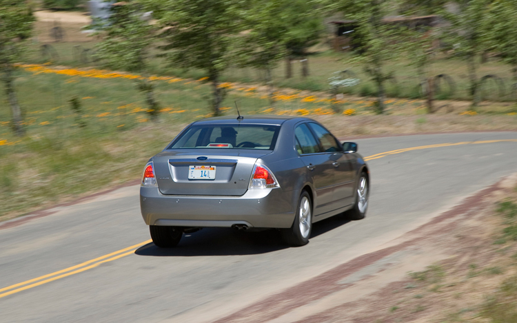 Its 2.3L four-banger didn't blow the doors off the competition, proving thrashy and asthmatic on inclines and just adequate everywhere else -- and that was while driving without passengers or cargo. (A more energetic 2.5L four with around 170 hp will replace the 2.3 for 2009.) The Fusion's five-speed automatic did what it could with the 160-hp engine, holding gears longer to make up for the relative lack of power. Unfortunately, it doesn't allow you to take control-the shifter lets you choose between D and L, and, when in L, it doesn't take much for it to bounce off the rev limiter. Manual control would've been welcome. Where the Fusion shines, though, is on twisty roads. It uses a version of the Mazda6's chassis, making the Ford confident and firmly planted in turns. It's also well controlled over bumps and irregularities and compliant enough to offer a comfortable ride; in addition, steering is linear and predictable.