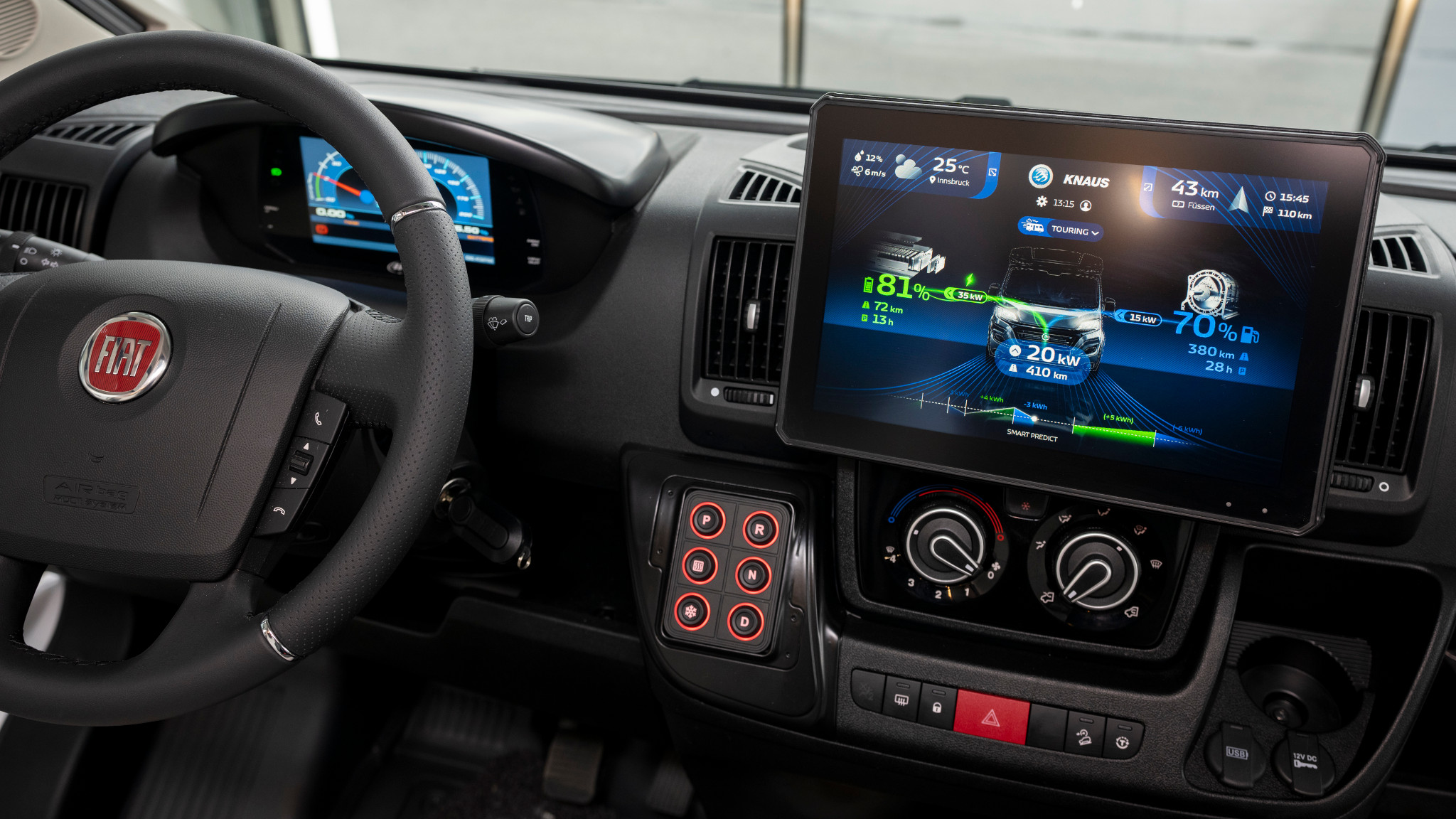 A small battery and a three-rotor Wankel power this electric motorhome.