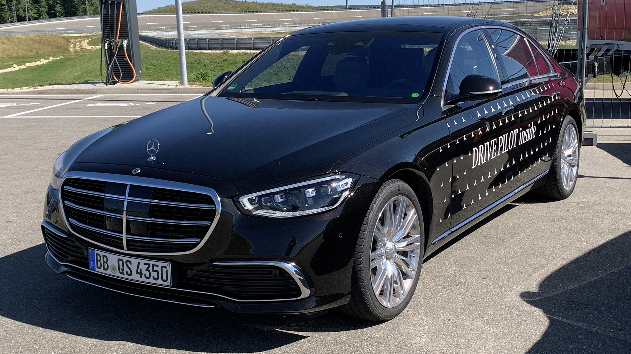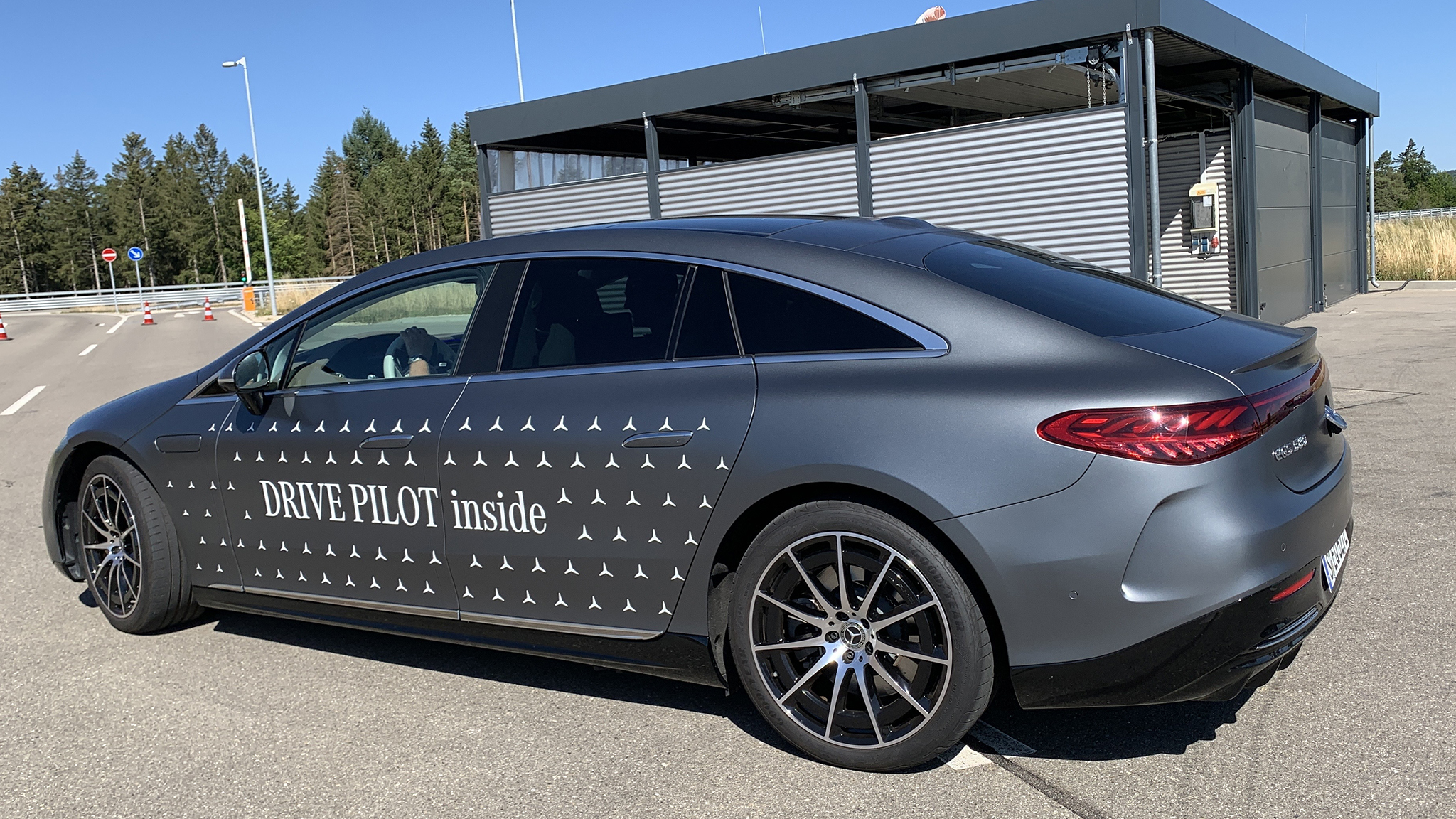 We drive, or more correctly are driven, by a Mercedes-Benz EQS in Germany where it is legal.