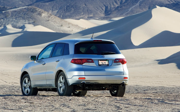 Credit the RDX's variable-flow turbocharger and 13.5 psi of maximum boost, which musters the most torque (260 pound-feet) of the bunch. Of course, the RDX isn't just swift in a straight line. In lateral acceleration and the figure eight, the Acura boasts the most brisk numbers-0.83 g and 27.7 seconds at 0.62 g, respectively-verification that the SH-AWD system, which distributes torque not only between the front and rear axles but also the left and right rear wheels, is indeed "super handling." Compared with the MKX, the RDX feels like an NSX. According to St. Antoine, "There's more understeer than I expected, but the SH-AWD helps pull the RDX out as the corner progresses." On sand, the SH-AWD doesn't skip a beat, turning the RDX into a capable off-roader, although its 6.3 inches of ground clearance and fussy traction control (we couldn't disable it with the tires deflated to 15 psi) make it more of a soft-roader.