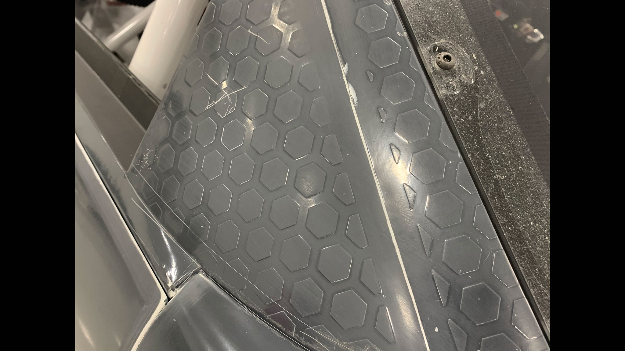 The hexagons are on all the key aero areas and will show up even after the car is wrapped.