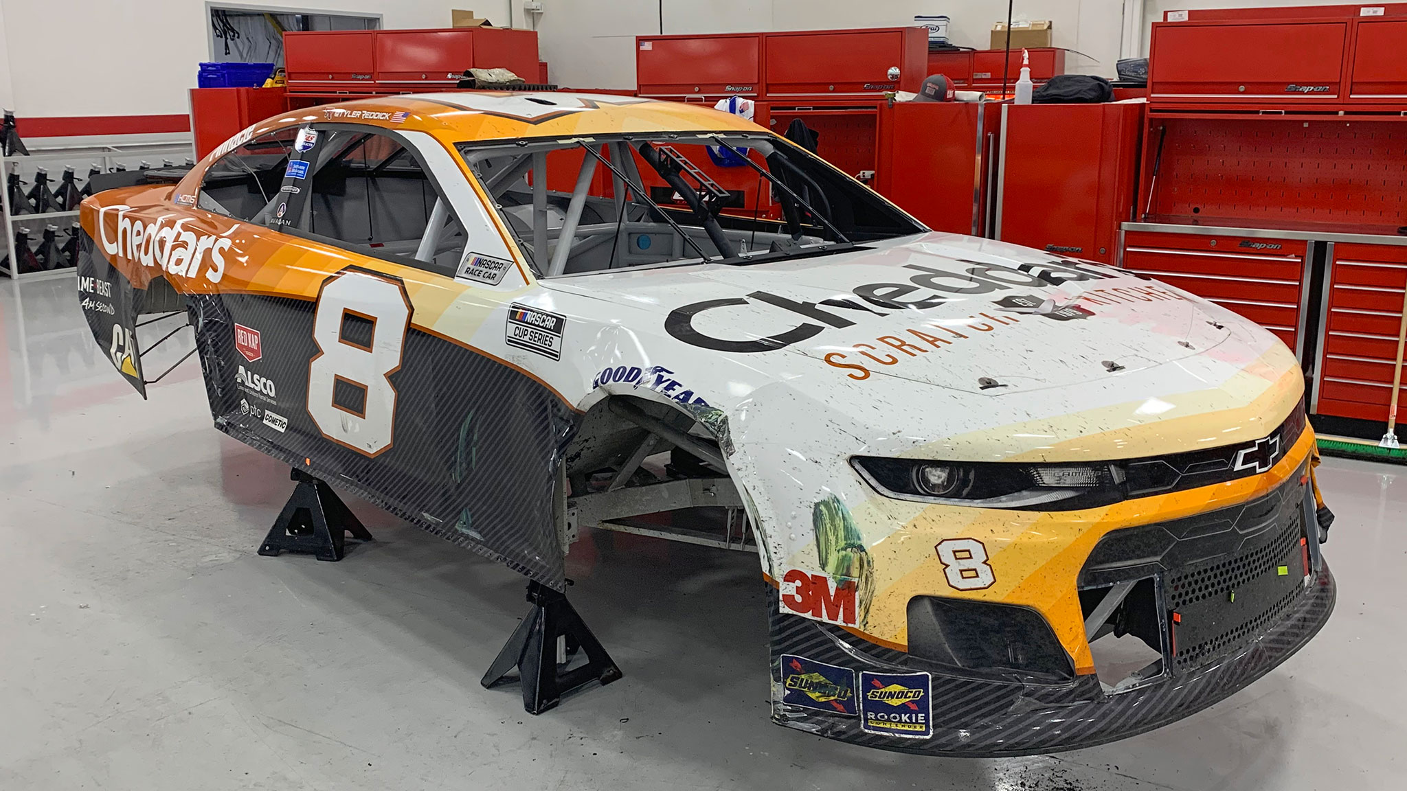 While the car is being built, the RCR Graphics Center, run by Nick Woodward, is hard at work designing the wrap for the car. Every race has its own wrap, and wraps are never used twice since sponsors—and other factors—change. This wrap was a for the March 2020 Homestead race that was postponed due to the pandemic.