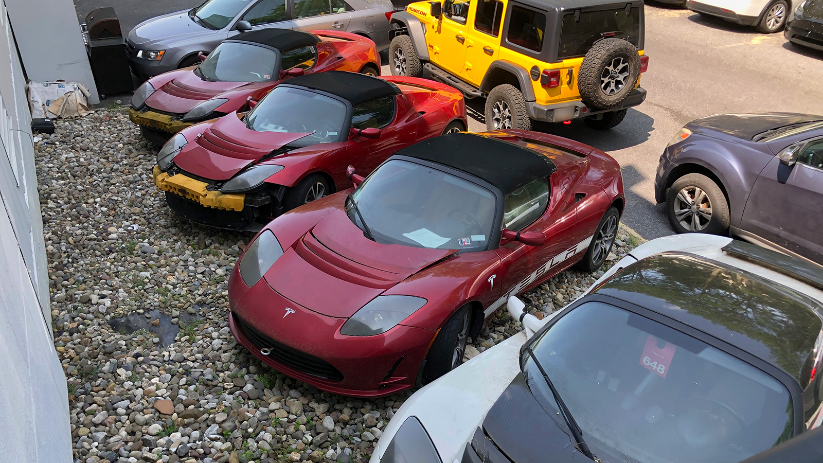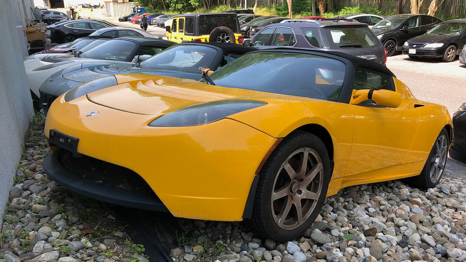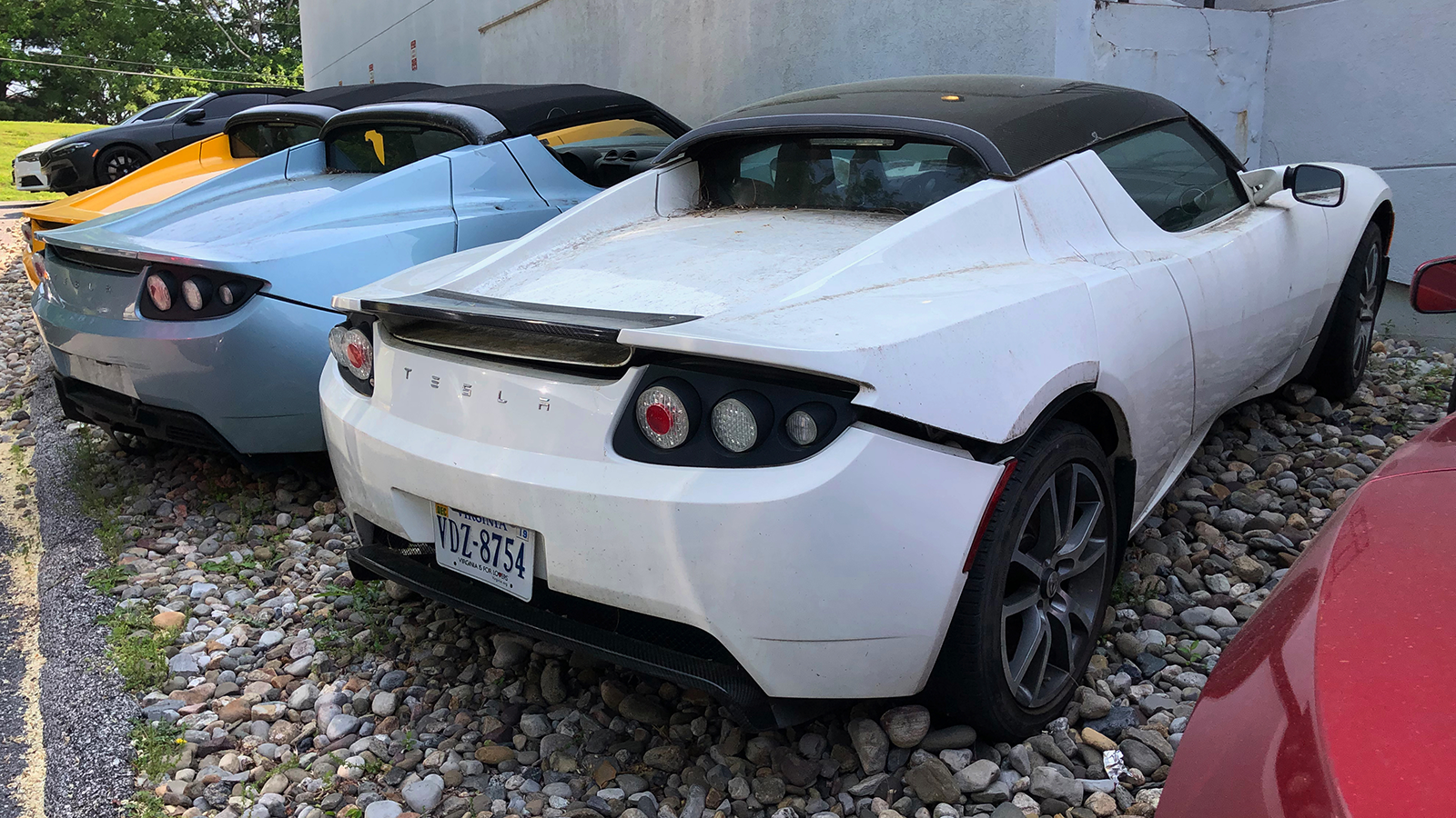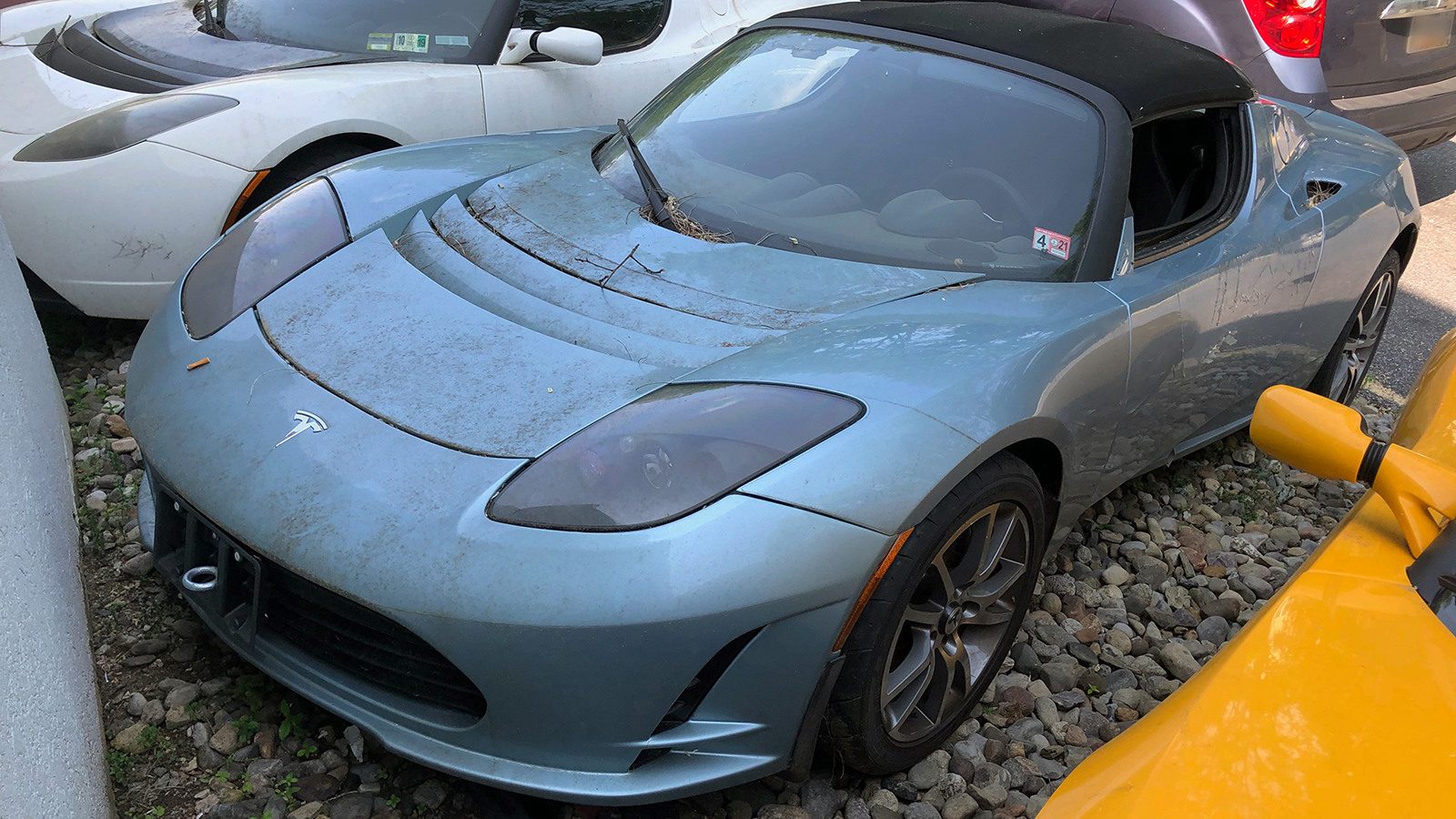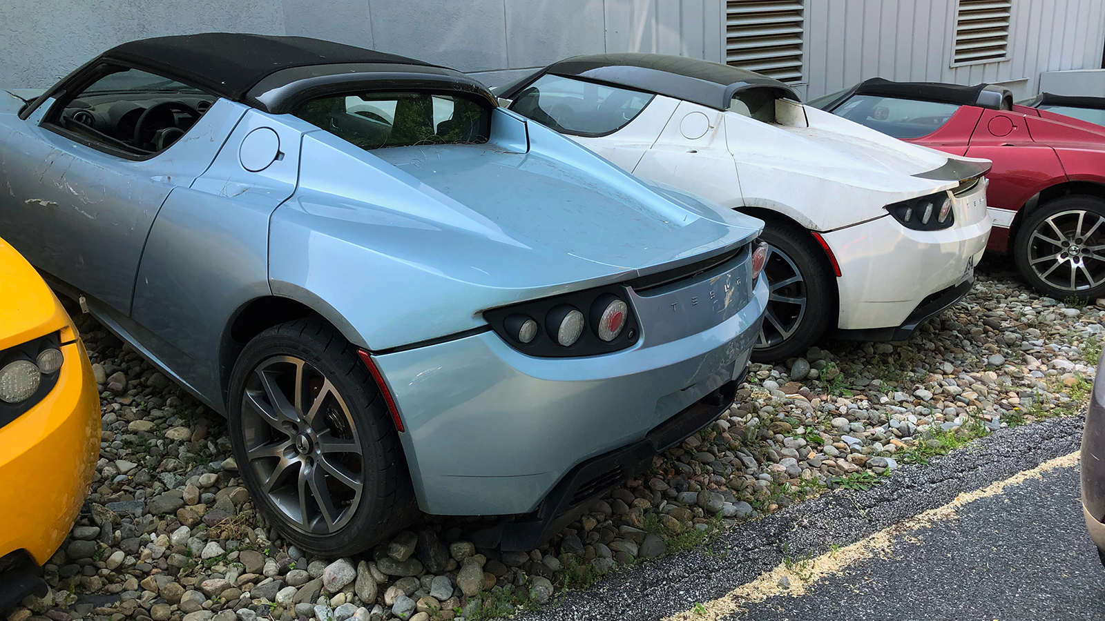 Hidden boneyard for rare old Tesla Roadster EVs discovered during a Maryland road trip.