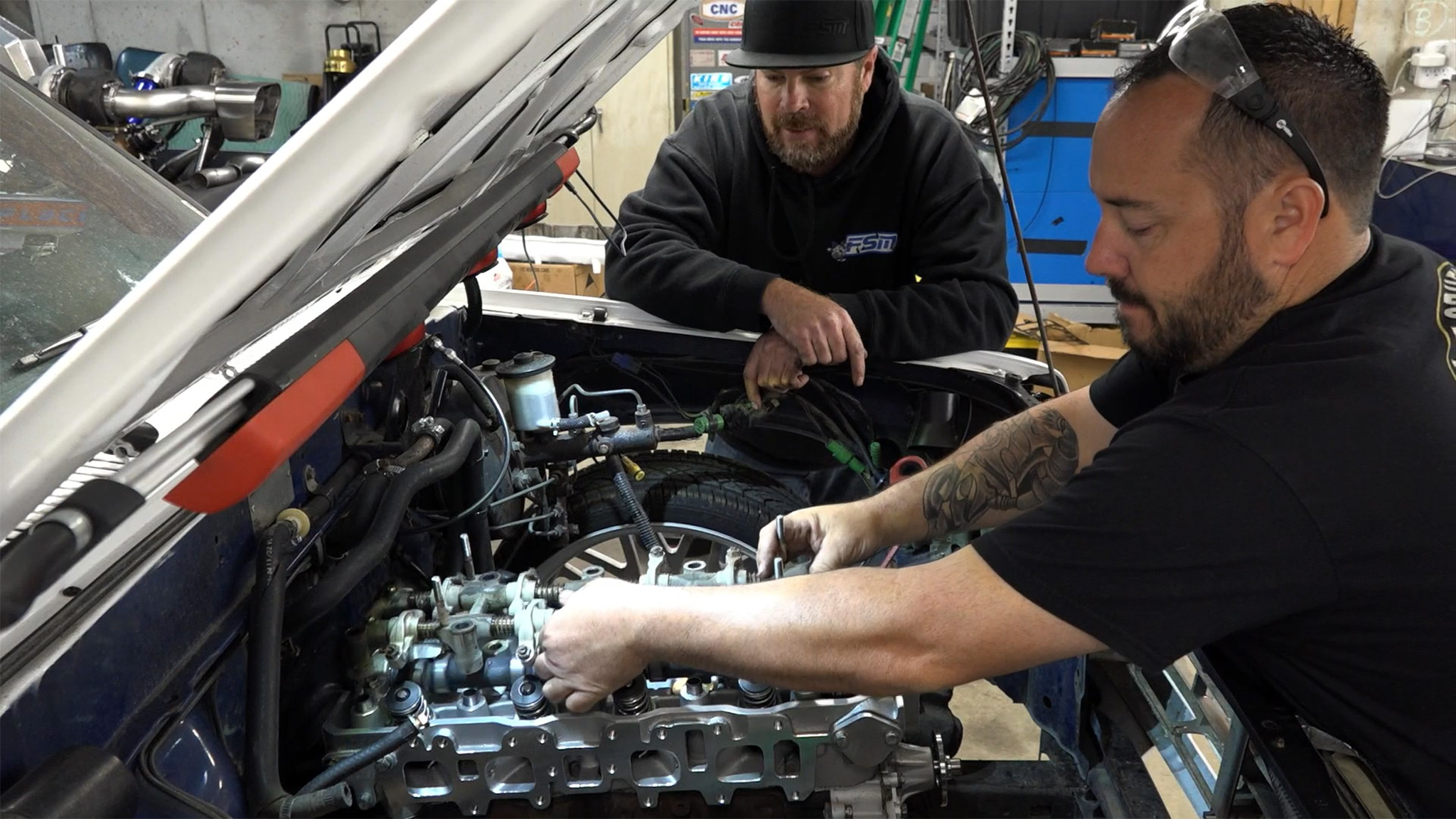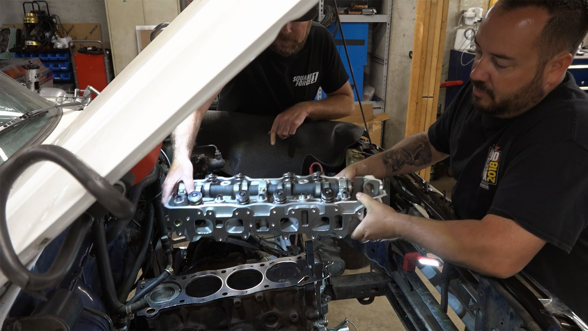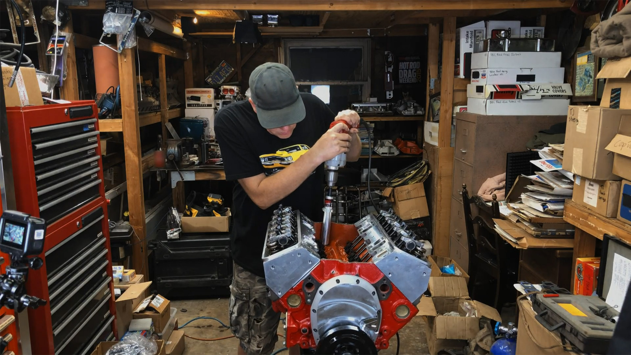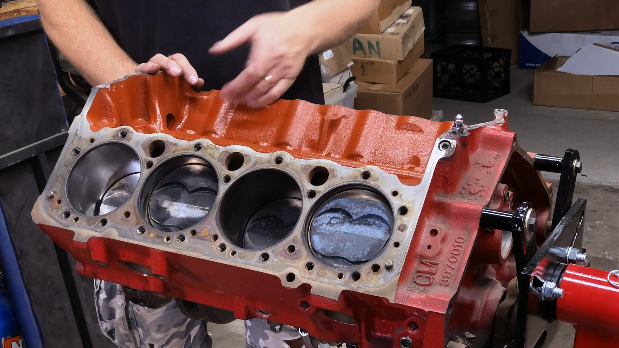 Which build-at-home engine will be done first: Freiburger’s 350 small-block or Finnegan’s 22R?