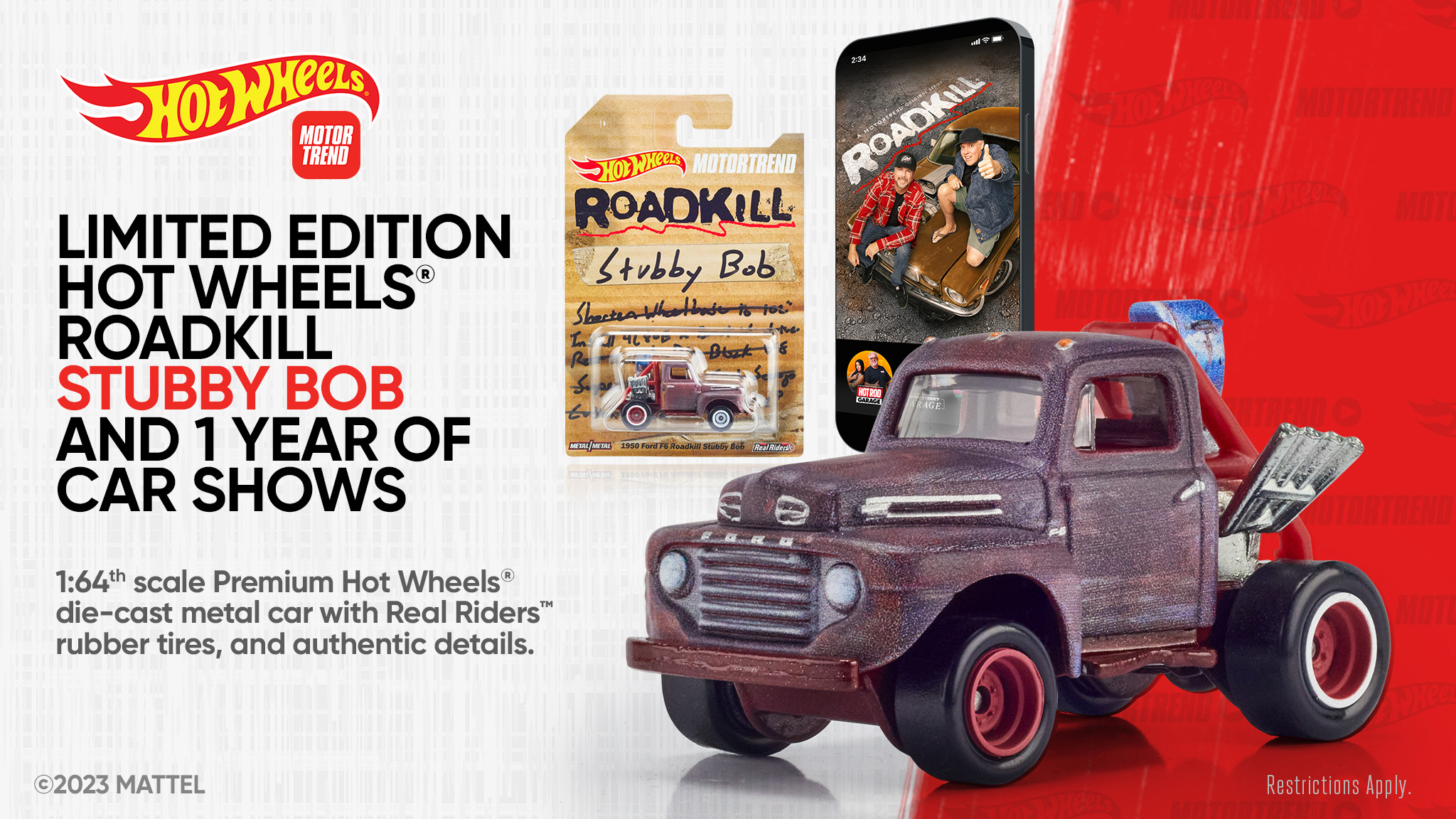 Sign up or renew your MotorTrend+ streaming subscription to get the Hot Wheels Stubby Bob die-cast metal car!