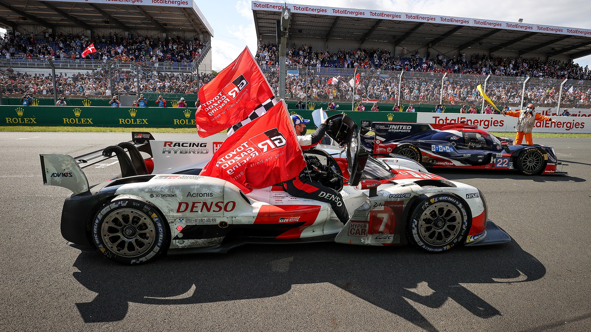 The No. 7 car, piloted by Mike Conway, Kamui Kobayashi, and José María López, was the winning team and were never really threatened, especially after No. 8 Toyota had a scrape with one of the other Hypercar class competitors of the American-based Team Glickenhaus early in the race. This is the first win for the Conway, Kobayashi, López trio after coming in second during their past three Le Mans outings.