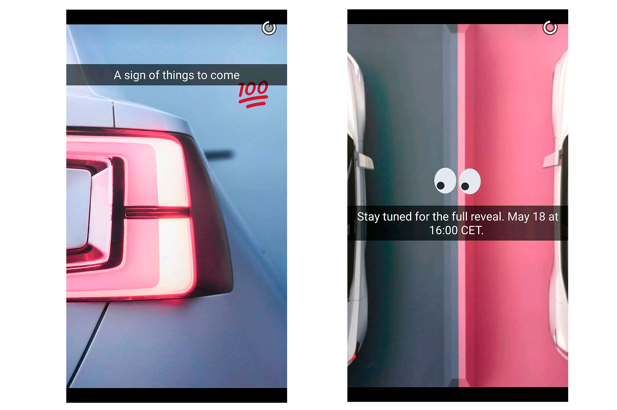 In addition to the taillight shot, a second image posted on Snapchat confirmed that Volvo is showing two concepts. The photo shows partial top-view shots of two separate vehicles, with the one on the left likely to be the S40 or V40 Concept. The one on the right, with the red background, is clearly a more SUV-like vehicle featuring Volvo's signature taillights that extend from the roof almost to the rear bumper.