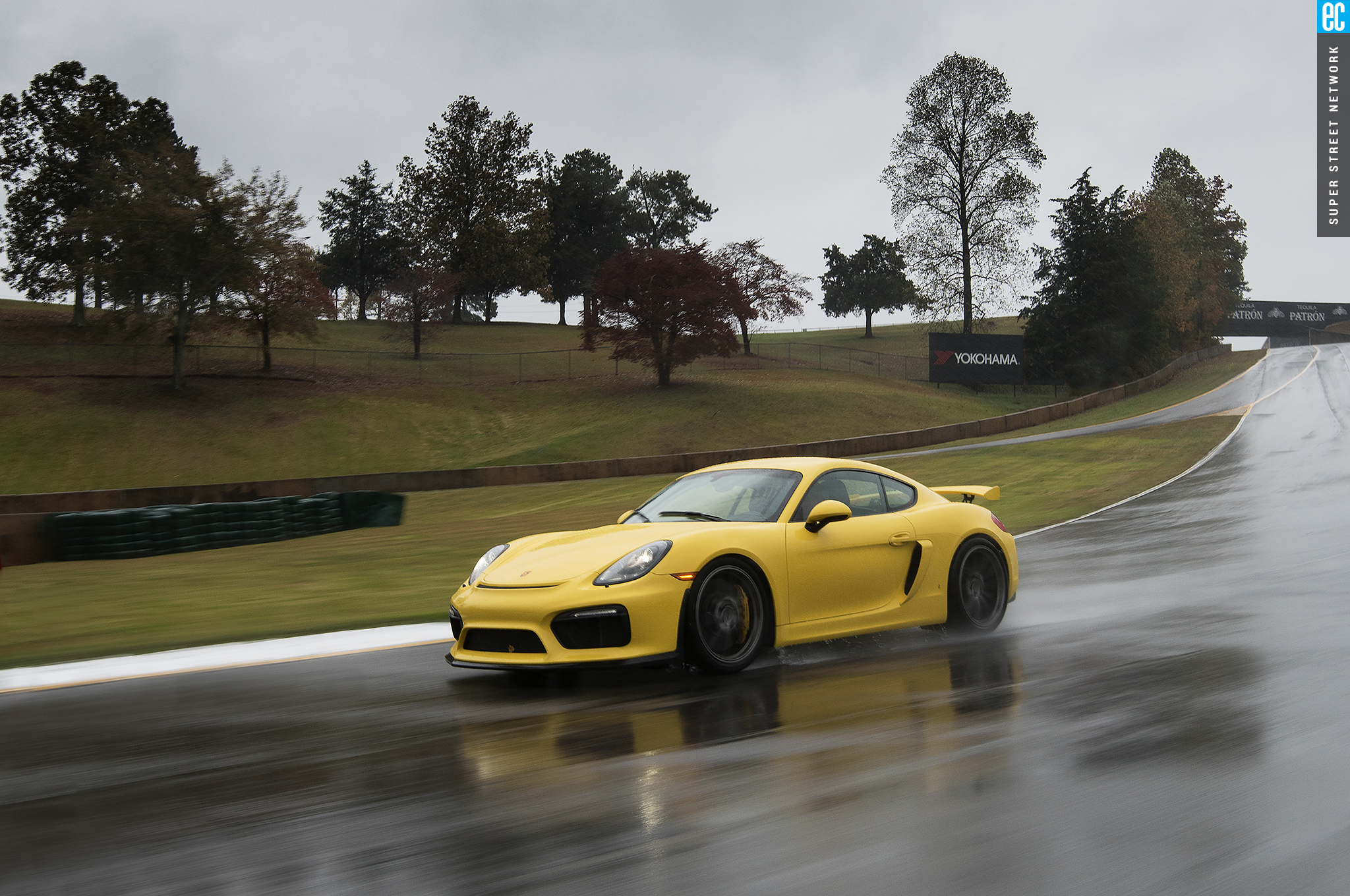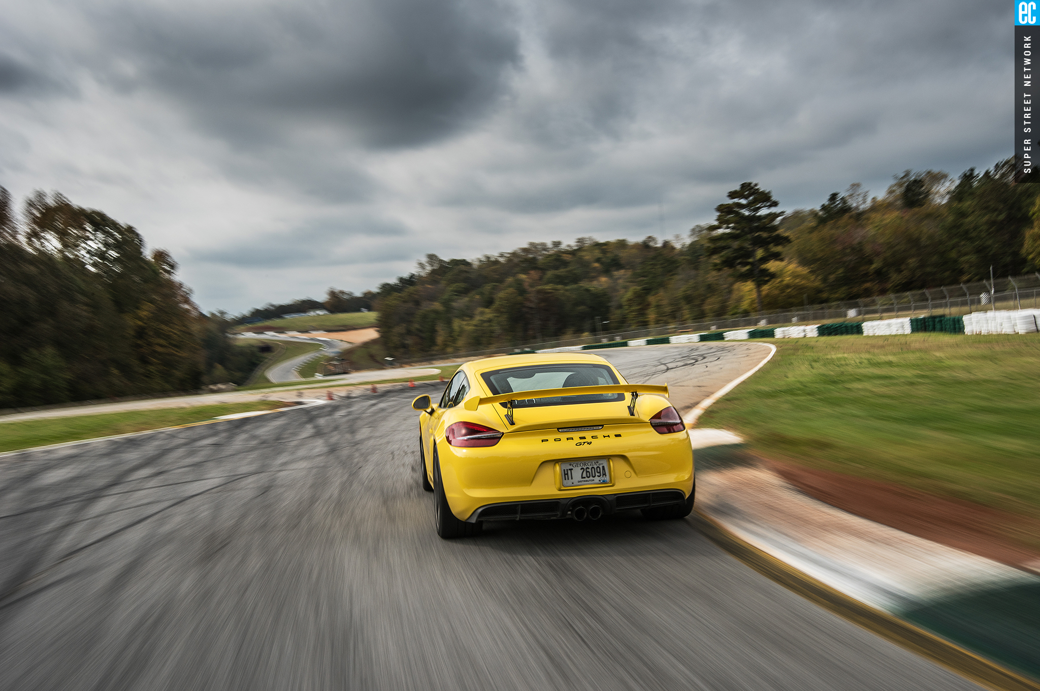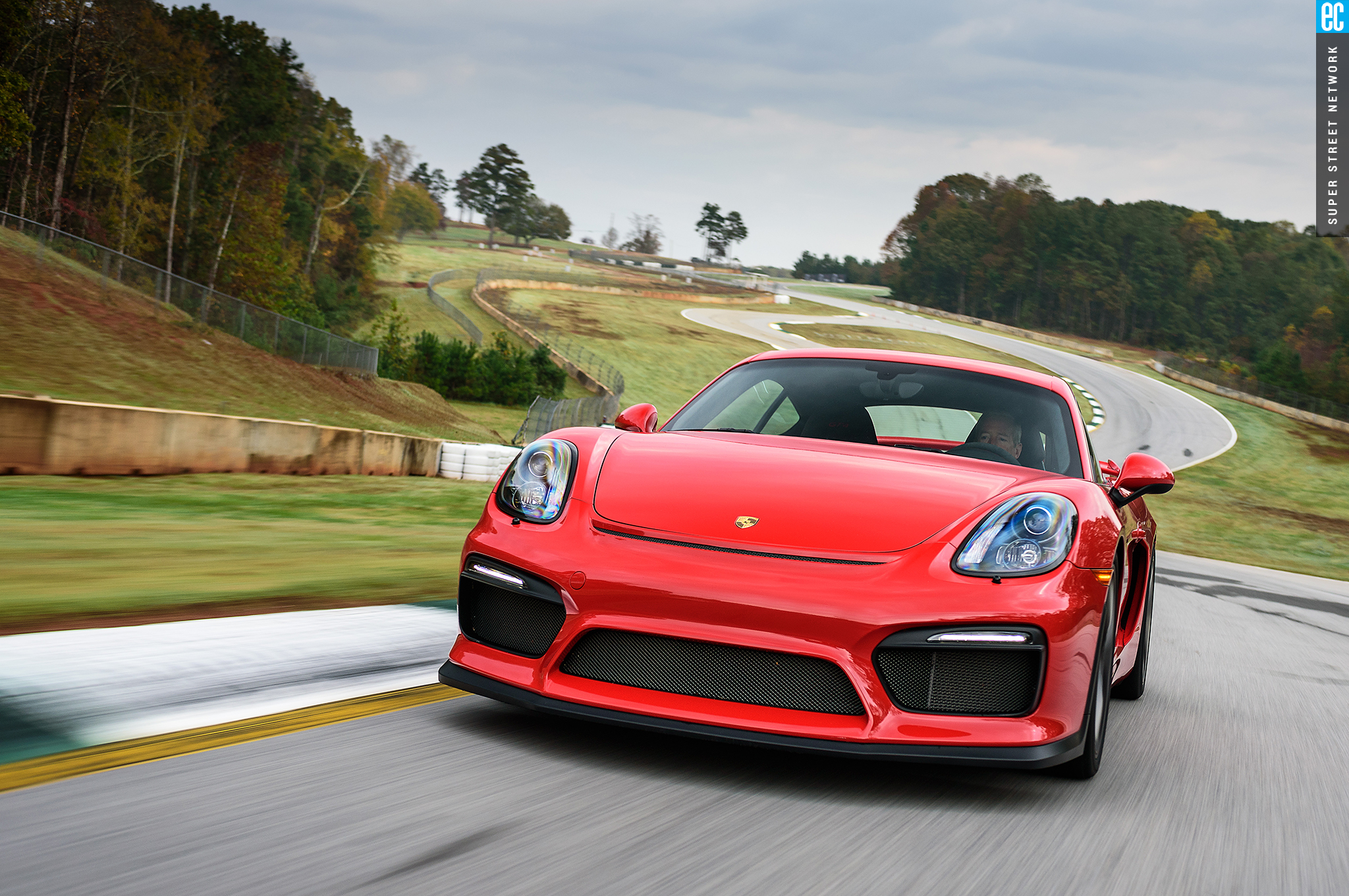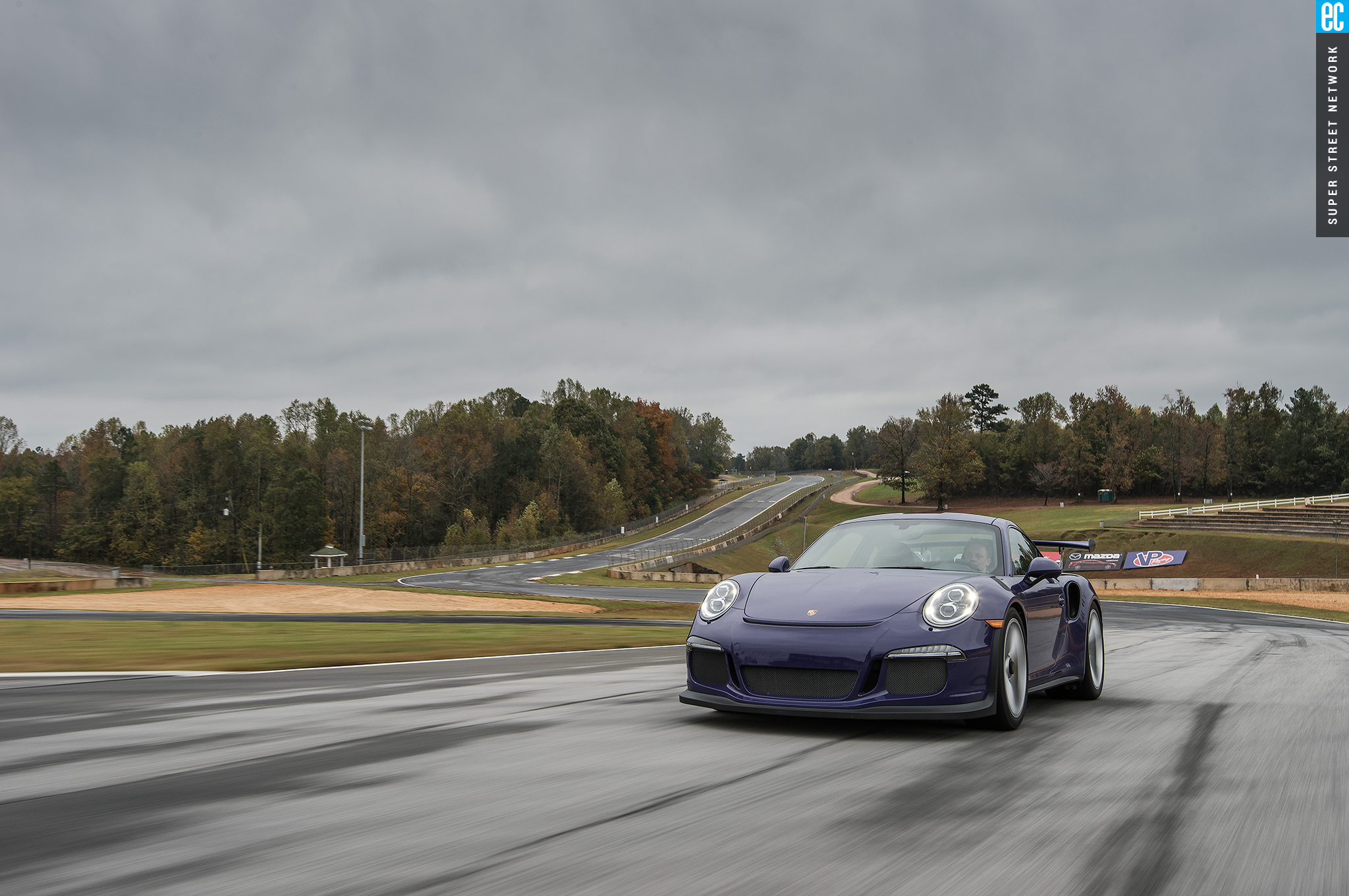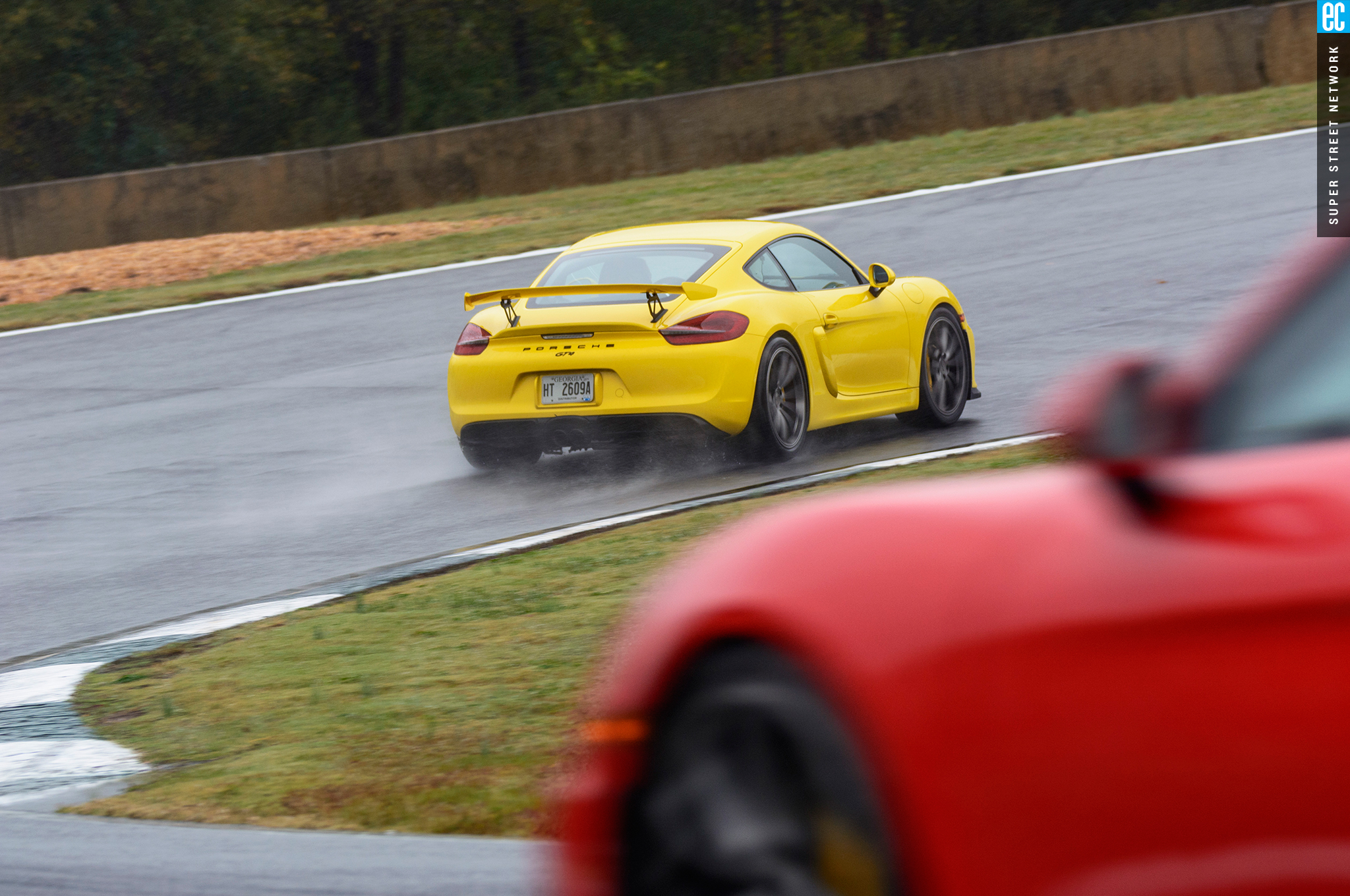 The first time I drove this car was in Germany on a track designed by Walter Röhrl to thrill experienced drivers and punish those ill equipped. It was a beautiful, sunny day with a light, cool breeze. At Road Atlanta, the track is more straightforward but the weather seems intent to do the punishing. The Michelin Pilot Sport Cup 2 tires are as good in the wet as something this good in the dry can be. Being from sunny Southern California, racing greats Hurley Haywood and David Donohue give me hints and tips on conserving heat in the tires and finding the driest areas of the tracks.