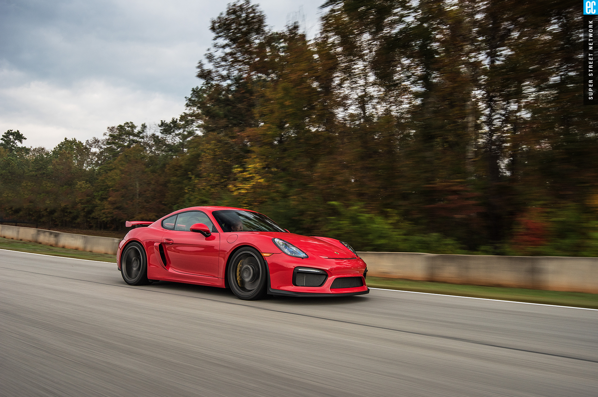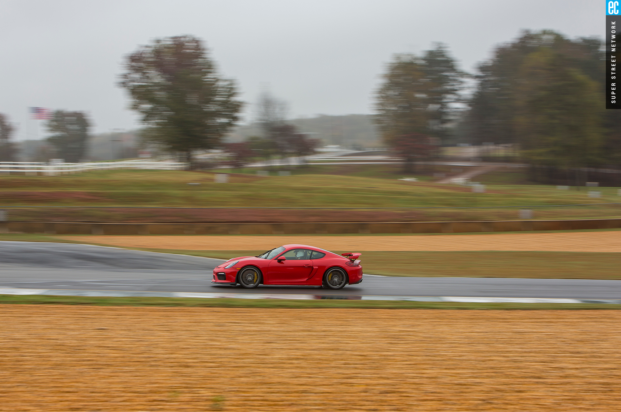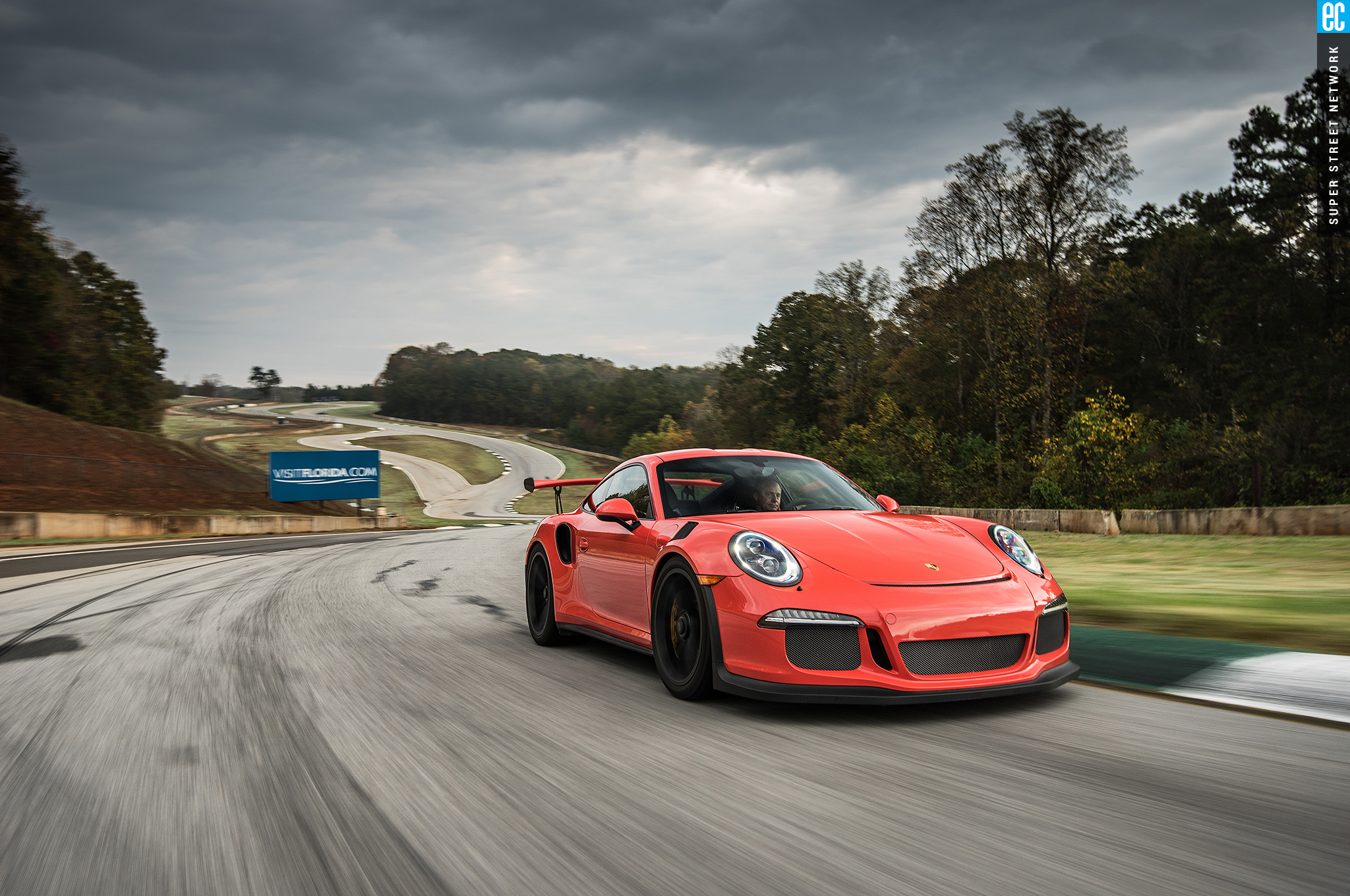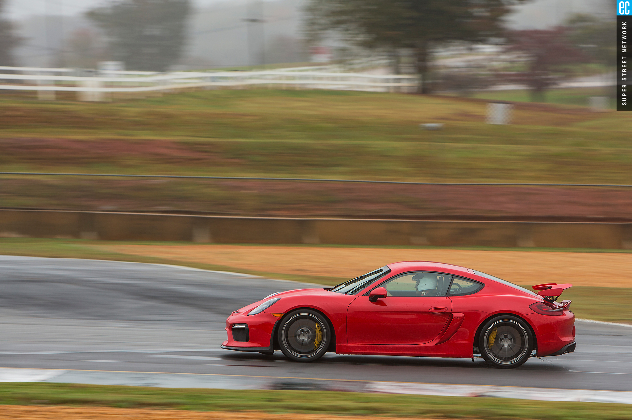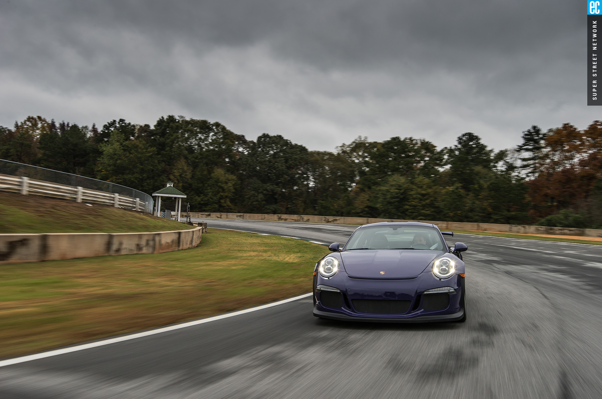 The first time I drove this car was in Germany on a track designed by Walter Röhrl to thrill experienced drivers and punish those ill equipped. It was a beautiful, sunny day with a light, cool breeze. At Road Atlanta, the track is more straightforward but the weather seems intent to do the punishing. The Michelin Pilot Sport Cup 2 tires are as good in the wet as something this good in the dry can be. Being from sunny Southern California, racing greats Hurley Haywood and David Donohue give me hints and tips on conserving heat in the tires and finding the driest areas of the tracks.