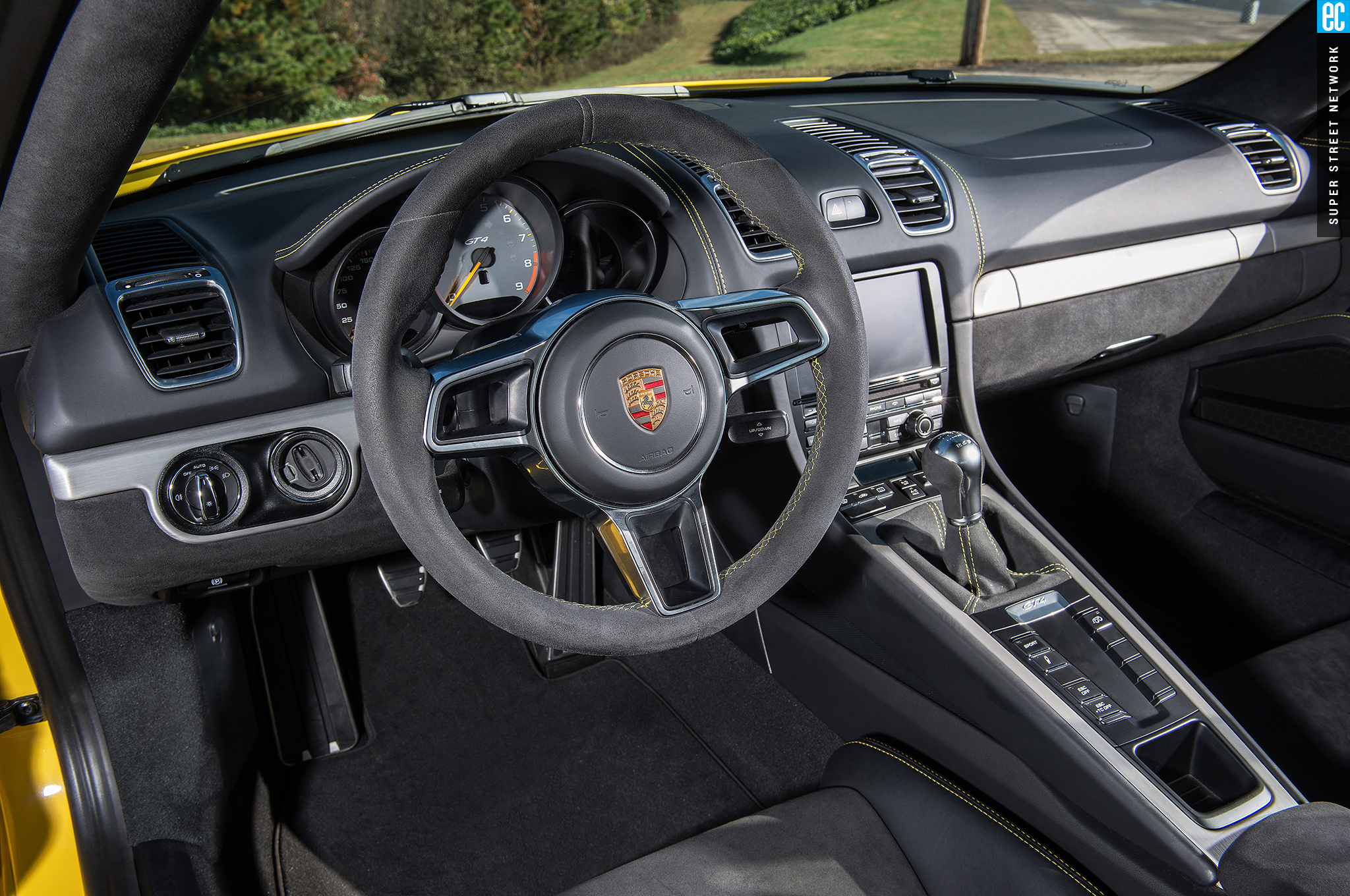 It would have to be something of the 956 vintage since the clutch pedal and H-pattern six-speed didn't make it far past that era of racing. There is some irony in the fact that the manual transmission is all but extinct, and this might be the best one I have ever experienced. The shifts are a mix of mechanical clinks linked by velvety slips between gears. The throws can only be described as ideal; any longer and it wouldn't fit the race-car-like mood, and any shorter would be a very well-engineered toggle switch. The clutch has actual feel. This isn't one of the many holdouts in the manual world that have polished out all the mechanical feedback in an effort to make them more attractive to modern buyers who are accustomed to all the feedback of an iPhone. The art, science, and fantasy of rowing through the GT4's gears is as tactile as dialing a rotary phone (ask your parents).