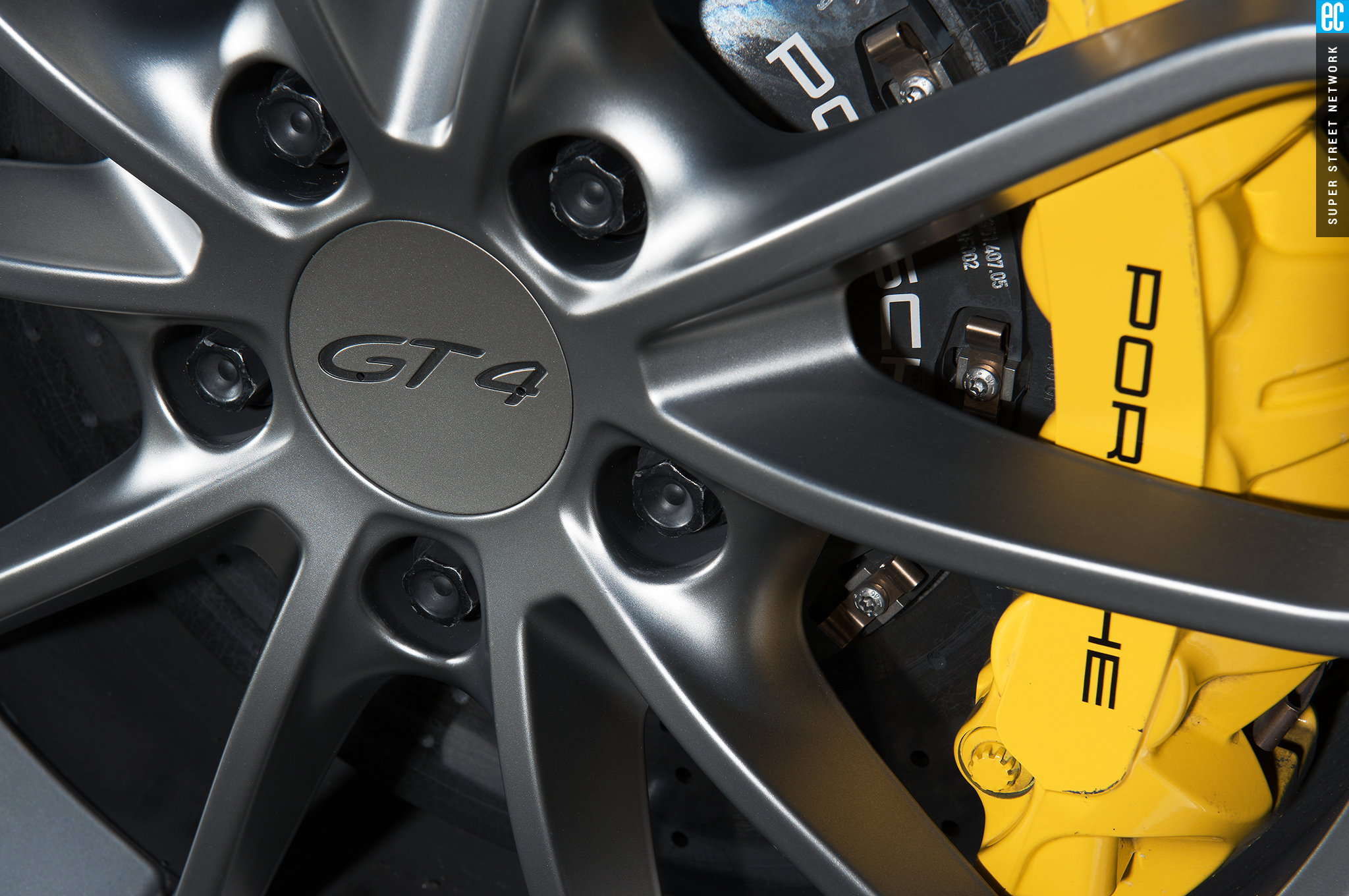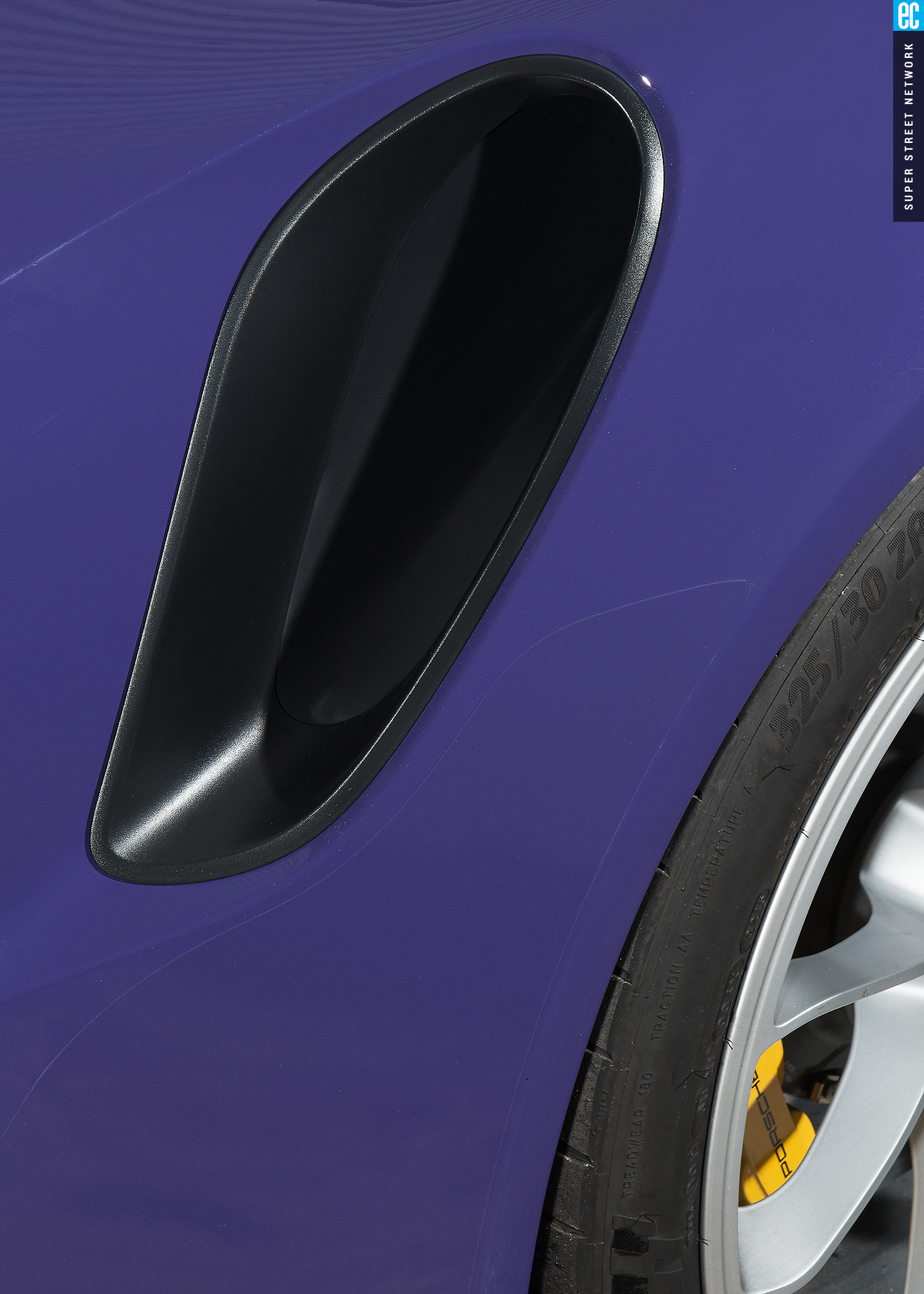 The GT4 is just over 200 pounds lighter than the 3,243-pound GT3RS but again, that is a very small part of the picture. The GT4 carries 56 percent of its total weight on the rear axle while the rear-engine GT3RS carries 61 percent. And while the Cayman wears an impressive 295/30-20 on the rear, the GT3RS has a whopping 325/30-21 out back, which happens to be the same size found on the back of the 918. Not only is the rear tire more than an inch wider than the Cayman's, the actual tread width is 2.5 inches wider and the tire is nearly 2 inches taller. It has a lot of sidewall and looks and performs better for it.