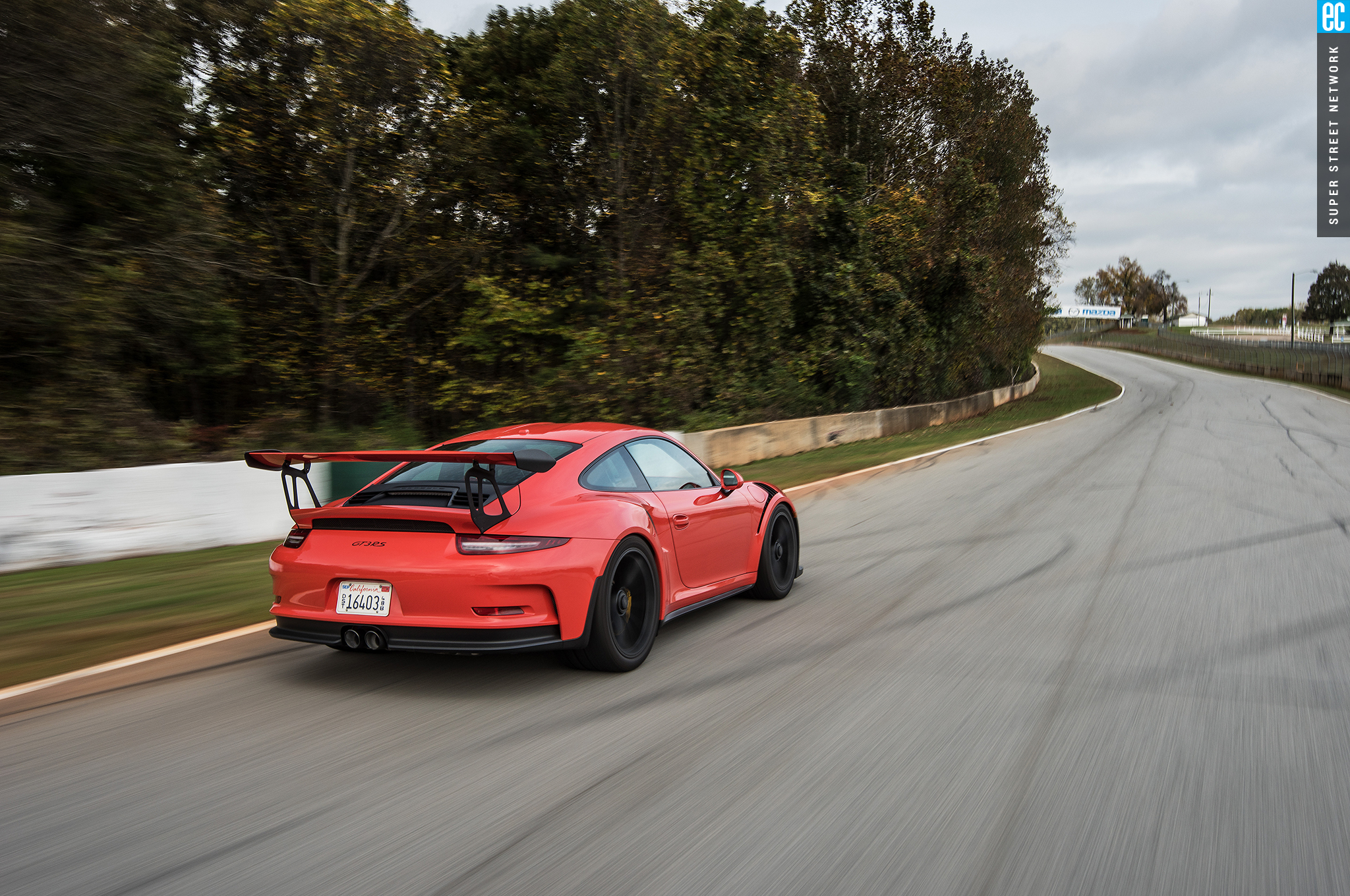 In Third gear, once straight and hooked up, the RS accelerates down the back straight with the authority of one of its all-wheel-drive siblings. Road Atlanta's back straight is not, in fact, straight. Turn 8 is a gentle left and then Turn 9 is a bit more aggressive and to the right, but made more interesting by cresting and falling away at the exit. Even in the wet, at speeds north of 125 mph (I stop watching the speedometer at that point), the car feels planted in a way the GT4 doesn't. In the dry, I'm confident it would be even more in favor of the RS as speeds would be higher and the RS's tires would be even more effective. The end of the back straight really tells the story. The track drops away even faster as you squeeze into the brakes, the rear-engine and high-downforce RS burns-off speed easier than just about any other road car. The old cliché of races are won in braking zones is an old cliché for a reason. I've changed my mind, the RS doesn't so much as trick you into thinking you're in a Cup Car but reminds you that you are basically some leather and carpet away from one.