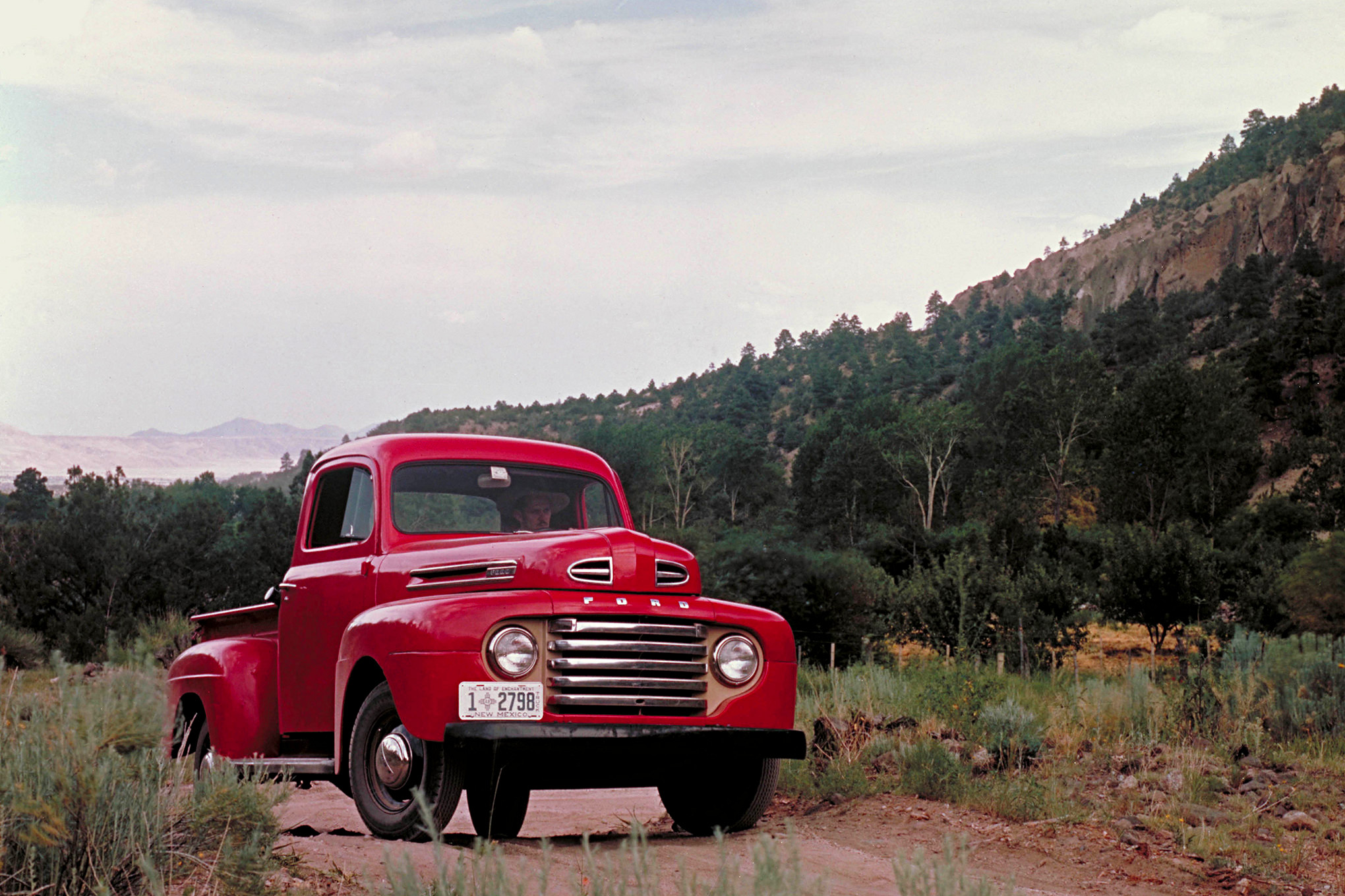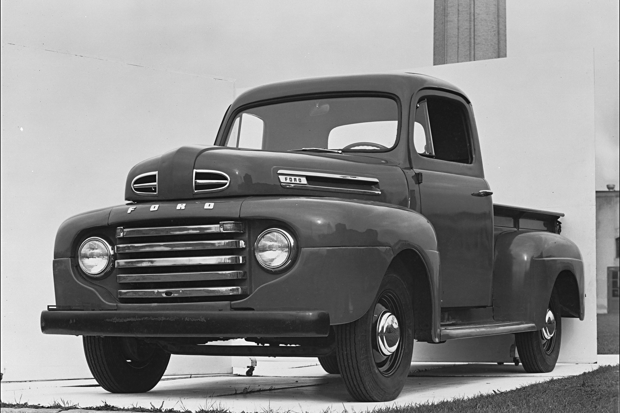 Following war production experience with heavier trucks and four-wheel drive, Ford introduced the first F-truck for ’48. The Bonus Built Line covered 1/2-ton F-1 through 3-ton F-8, had a five-bar grille, and 1/2-tons came with a 226ci, 95hp flathead six or a 13-cubic-inch-larger flathead V-8 of 100 hp, either mated to a three- or four-speed gearbox. New features included a passenger-side wiper and taillight and optional four-wheel drive from Marmom-Herrington.