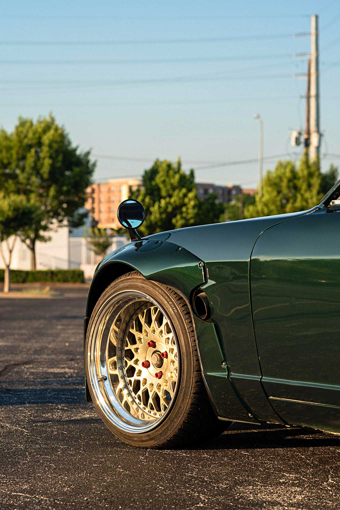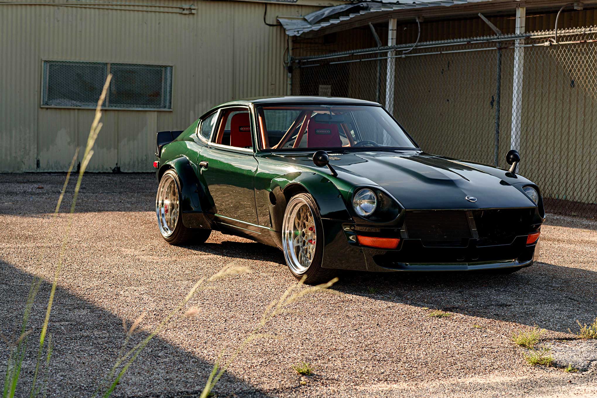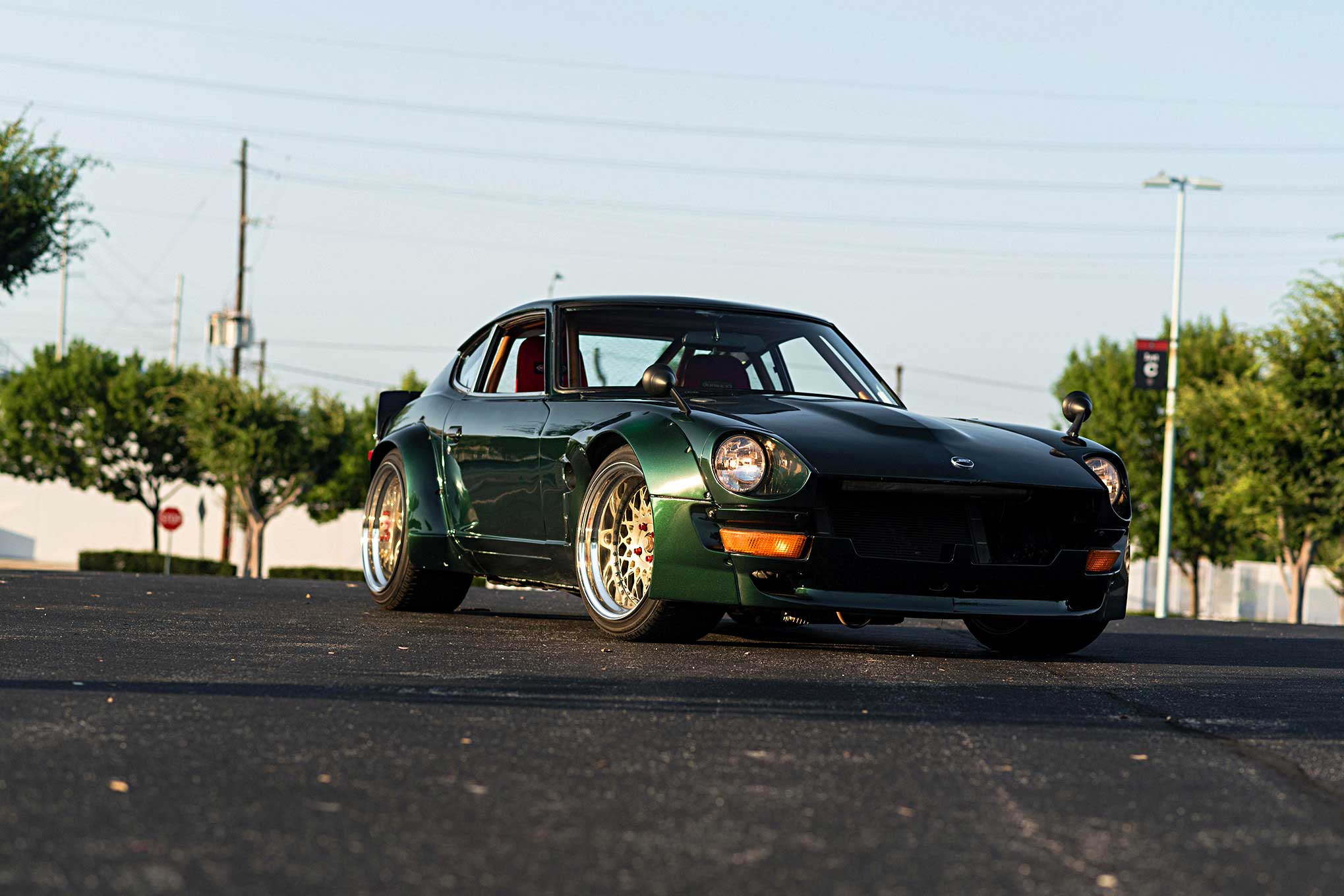 Up front, he installed a Pandem front air dam and front fenders but kept the Marugen Shoukai rear flares that were already on the Z. The front flares had to be trimmed to accommodate a pair of trick side-exit exhausts. Daniel did all the work himself, but turned to a local shop to spray the Racing Green Metallic paint he picked out. "I figured it looked good green, but I wanted my own shade of it," he said. The OEM Datsun color is complemented by a staggered set of 18-inch Avant Garde F141 wheels in champagne gold.