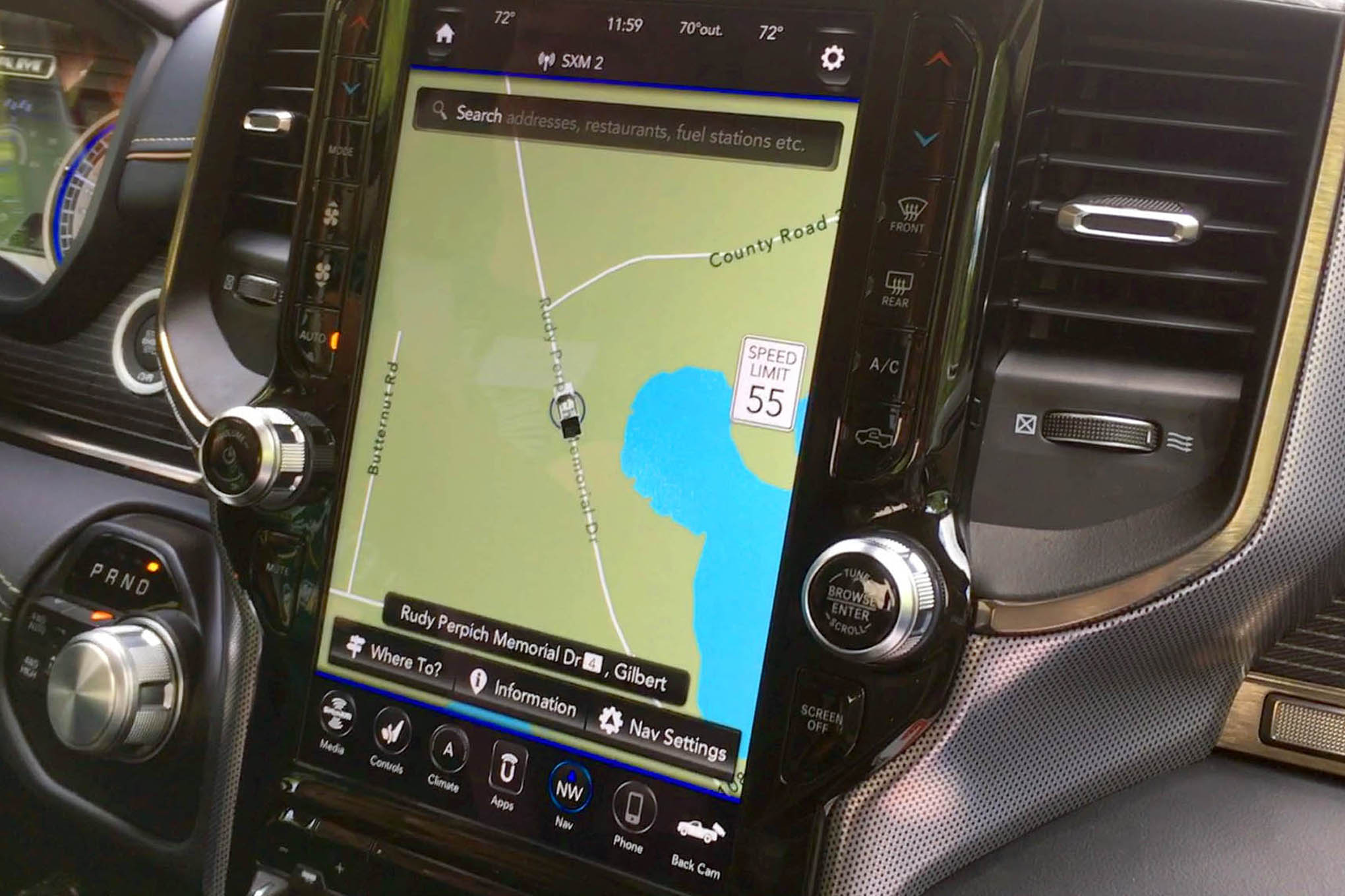 2020 Rebel buyers can choose from two body configurations: the Quad Cab with a 76.3-inch-long bed and 140.5-inch wheelbase or the Crew Cab with a 67.4-inch bed and 144.6-inch wheelbase. A Rebel Black Appearance Package is optional and includes black exterior paint, Ram badging, brushguard, wheels, and an all-black interior. Inside, the new 12-inch Uconnect 4C touchscreen is impressive and is an option on Rebel models.