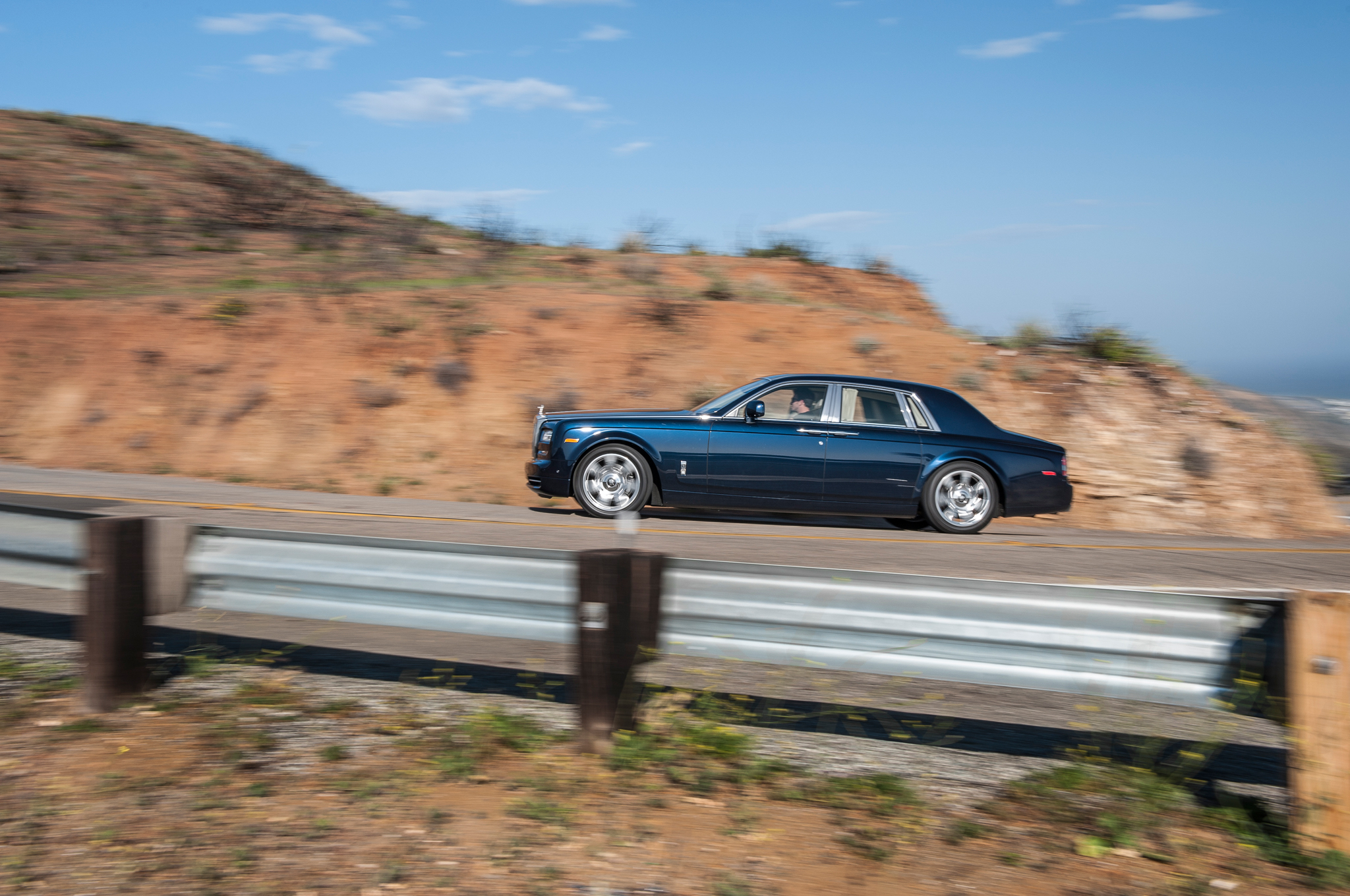 The big Roller has the same effect on whoever's inside its cavernous, ultra-lux innards. I base this statement on the reactions of my eight buddies, who fought each other for rides all weekend. The Prius V driver and the guy who doesn't drive at all seemed particularly impressed. I first drove the new Series II Phantom last year in and around Monaco. True, it happened to be the weekend that Francois Hollande, the Socialist president of France, got himself elected. But those collectivist shockwaves never reached the South of France. The Phantom, while obscenely special, purposefully ostentatious, and delightfully decadent, never felt out of place. But while cruising the outlet malls in Barstow, we stood out like a well-massaged, truffle-fed, gilded thumb. Yet even though were performing a very poor impression of the 1 Percent, we couldn't stop smiling. Obviously for someone with my net worth the Phantom is pure, uncut fantasy. But what fun!