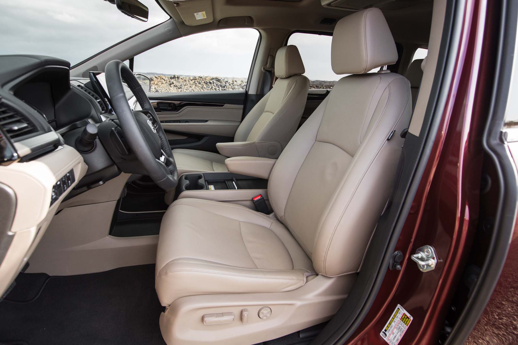 Ride quality is as impressive as the handling. The Odyssey has an all-new rear suspension and reworked front suspension, and they're dialed. No fancy adjustable shocks here, just solid tuning. It rides over bumps big and small, hardly noticing them. Little shake or noise is transmitted to the interior. In fact, almost nothing from the outside world gets inside. There's zero wind noise, and the engine is pretty quiet. It's a very serene environment, even at freeway speeds.
