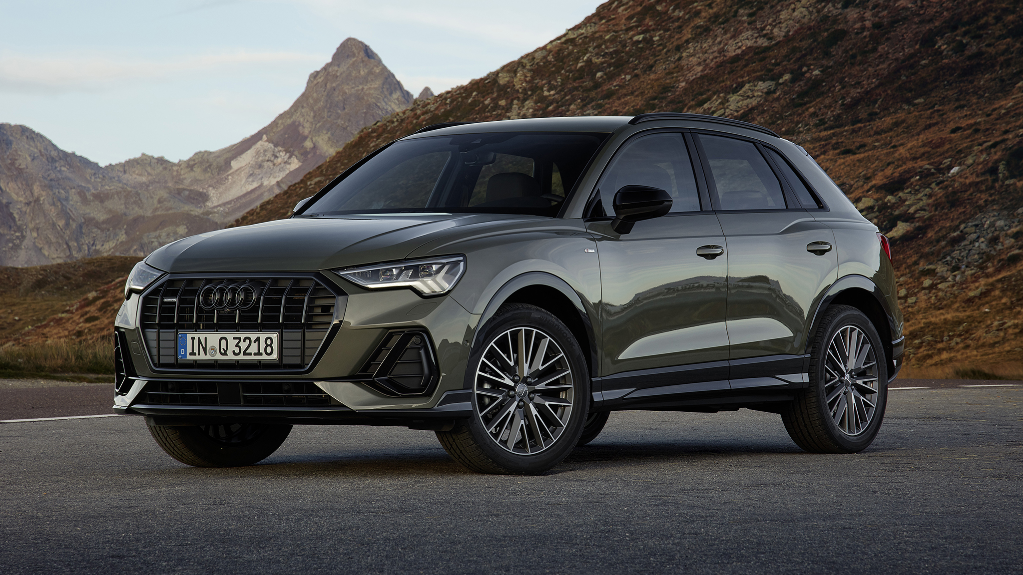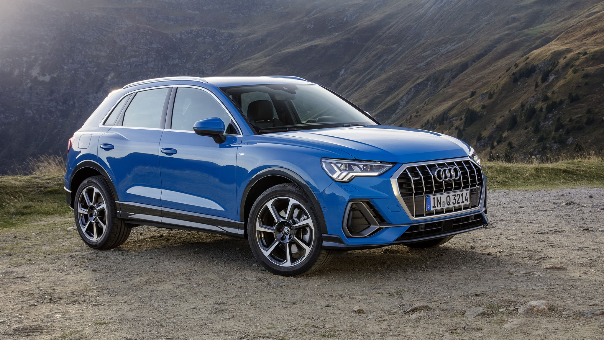 The new model is a ground-up redesign—and it shows. Even if you're like me and you barely remember what the old Q3 looks like, just one glance is all it takes to notice the design is now much more butch. Audi's signature octagonal grille dominates the front end and is flanked by a pair of LED headlights that slant inward. The body is also shapelier, with more prominent shoulders, Audi "Quattro blisters," and a raked rear liftgate that ditches the previous model's clamshell design.