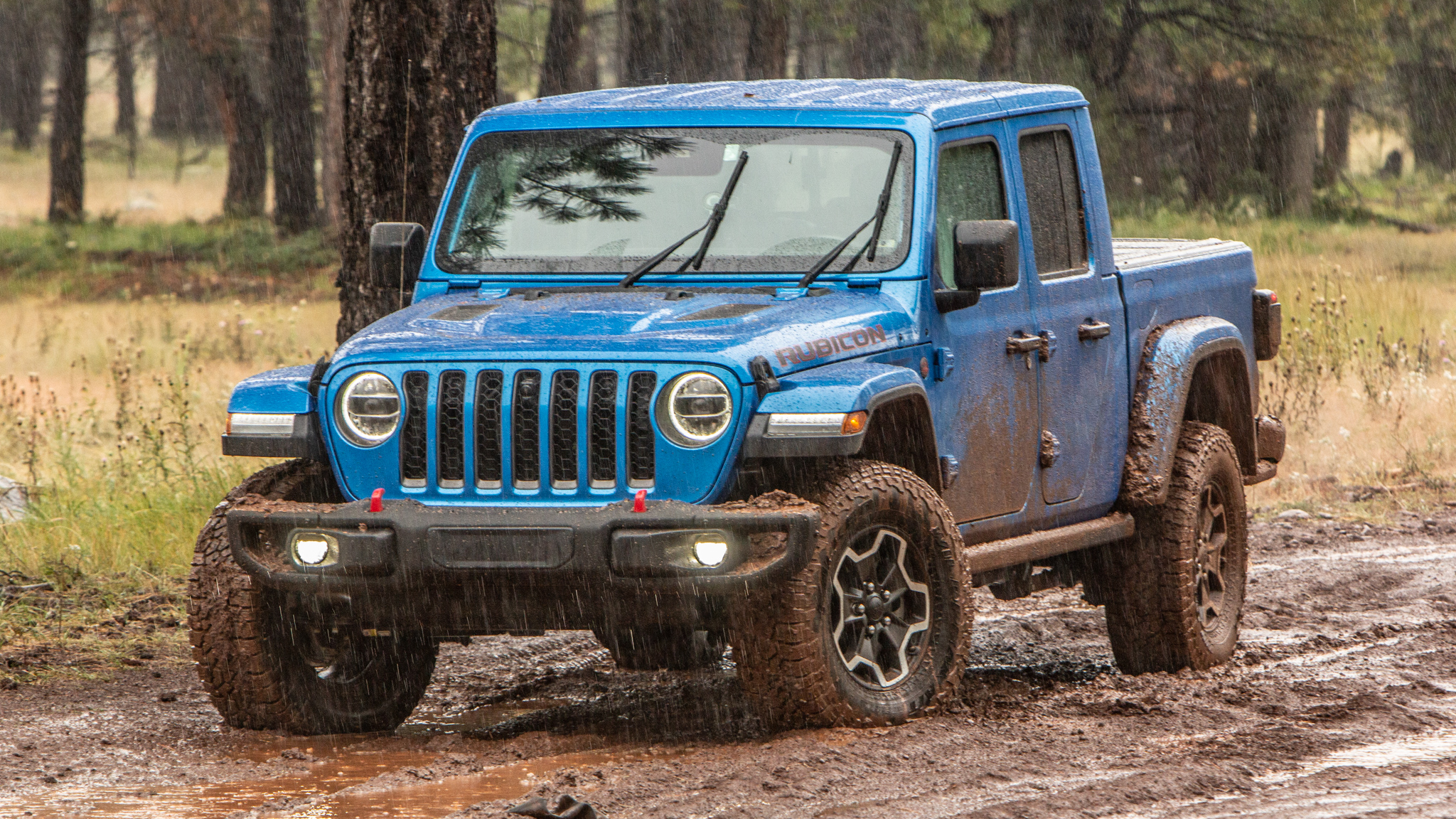 We hit mud and rocks hard in Jeep's tough truck.