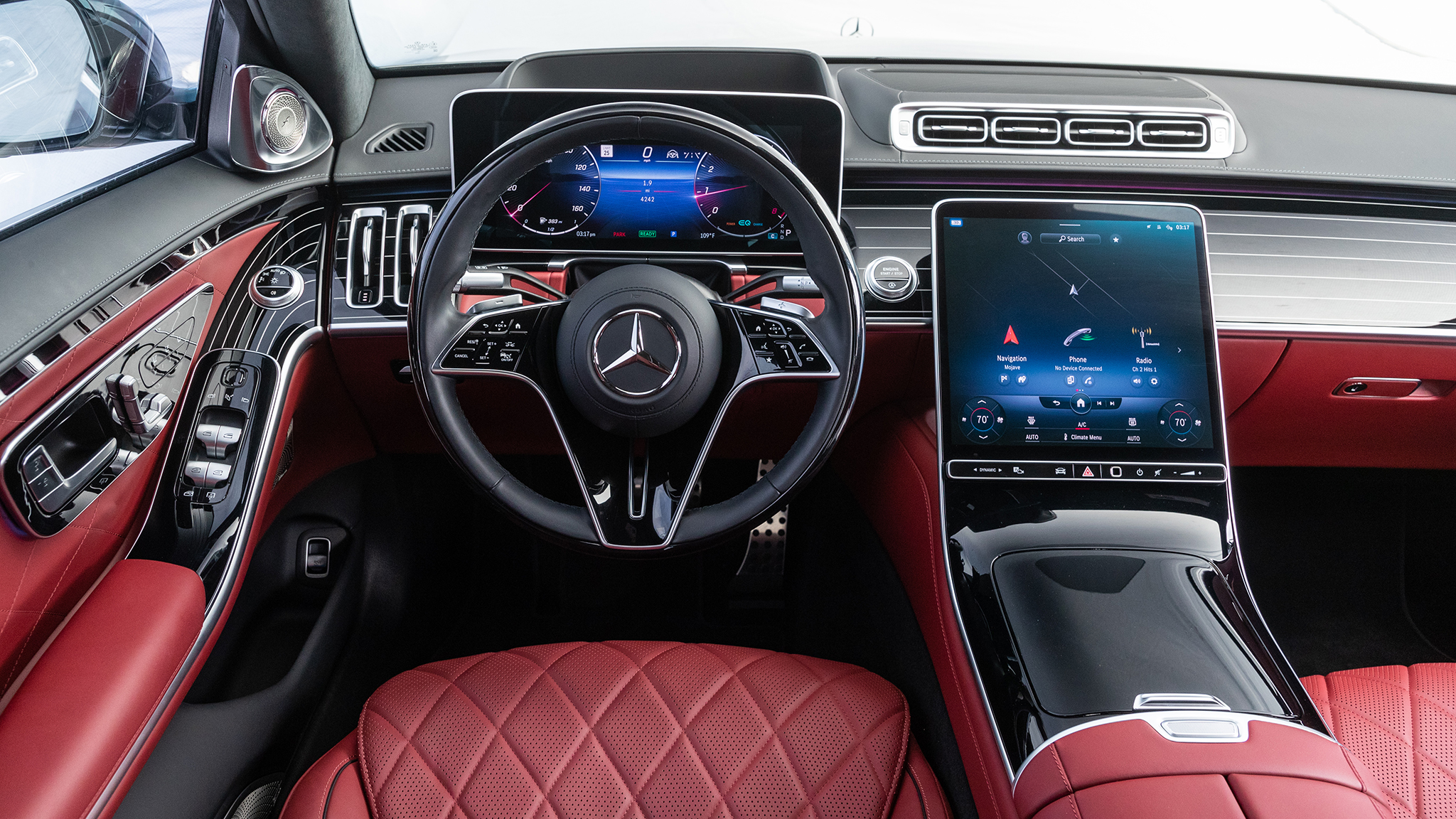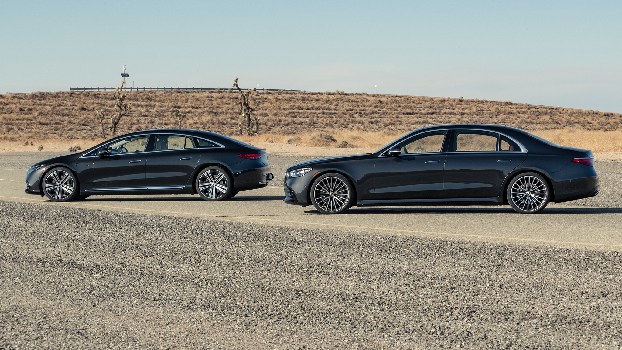 We drive both flagship Mercedes four-doors, the S-Class and the EQS.