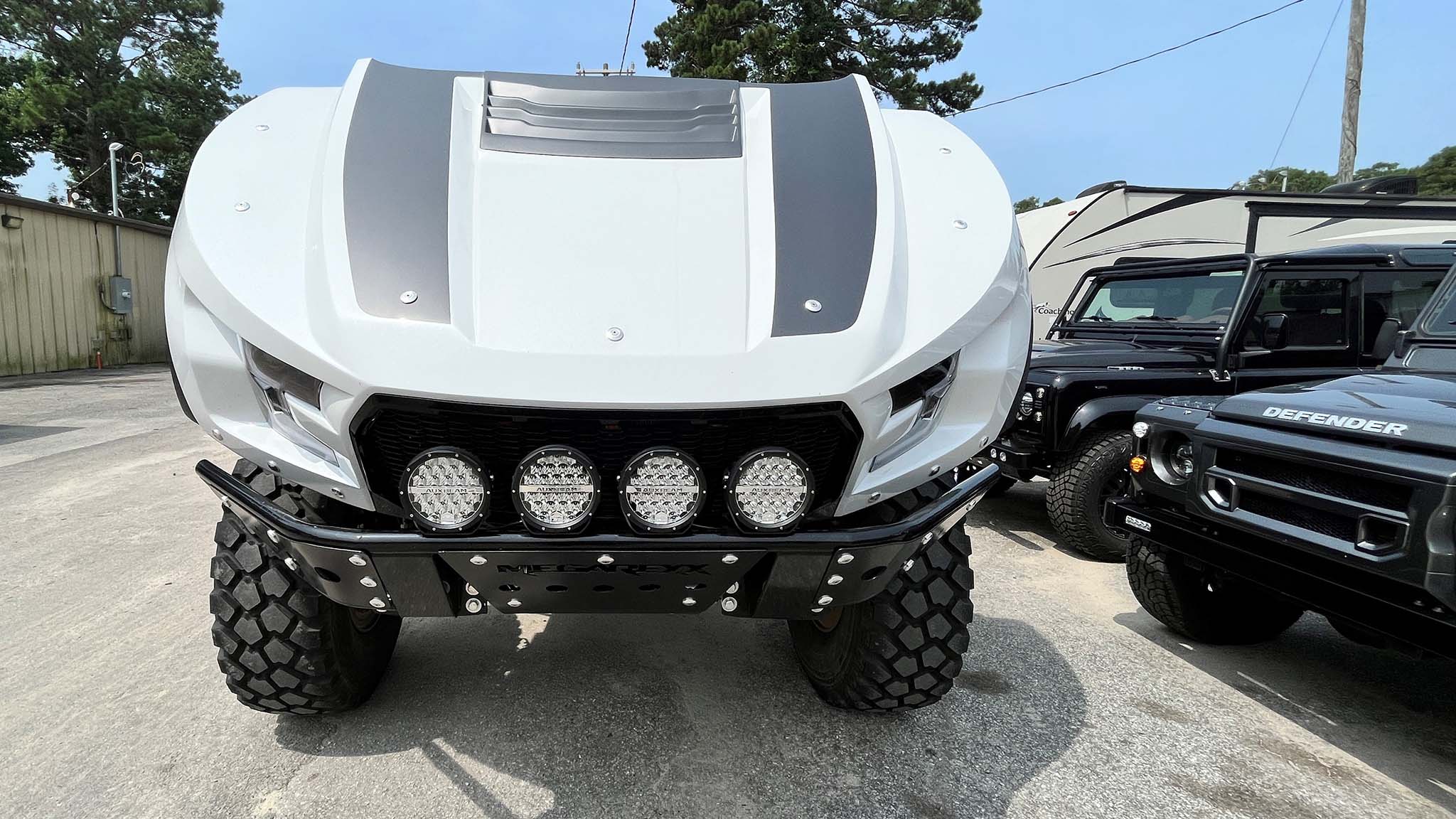Aaron Richardet of Wilmington, North Carolina, definitely is a truck enthusiast who thinks, and actually builds, on ahugescale. In addition to Osprey Custom Cars (the outfit that's responsible for the hand built, LS3-powered Land Rover Defender 110 we evaluated), Aaron also owns MegaRexx, a company that has somewhat reinvented Ford's Raptor, in a unique, and very big way.