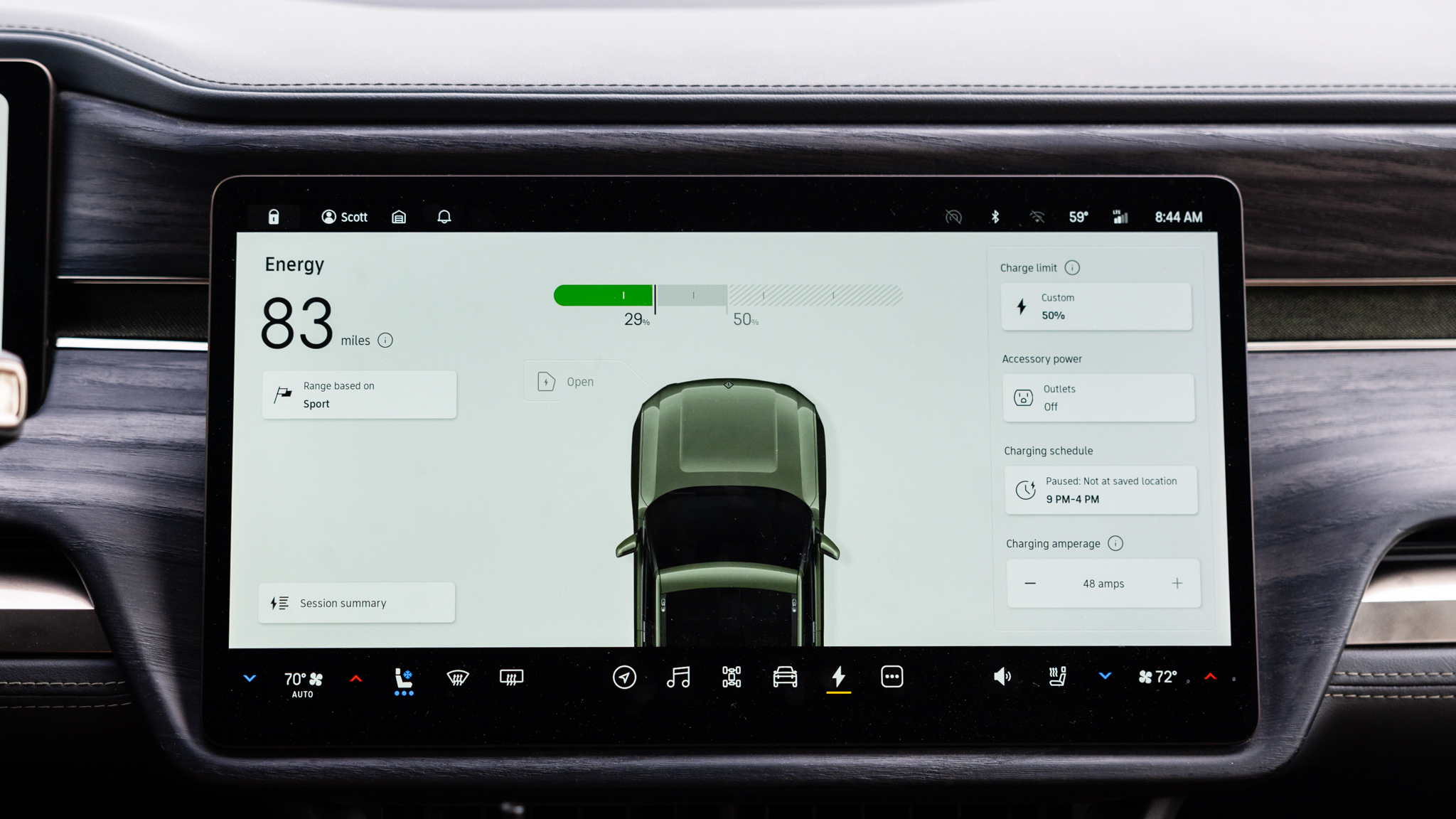 About a minute after the truck had put itself in park, the climate control turned itself off, as did the wireless phone charger (though the phone would still charge from the USB port). The seat coolers still worked, as did the screens and windows. We also opened the tailgate and hood, both of which have electronic releases, to access our lunches and drinks before the power ran out.