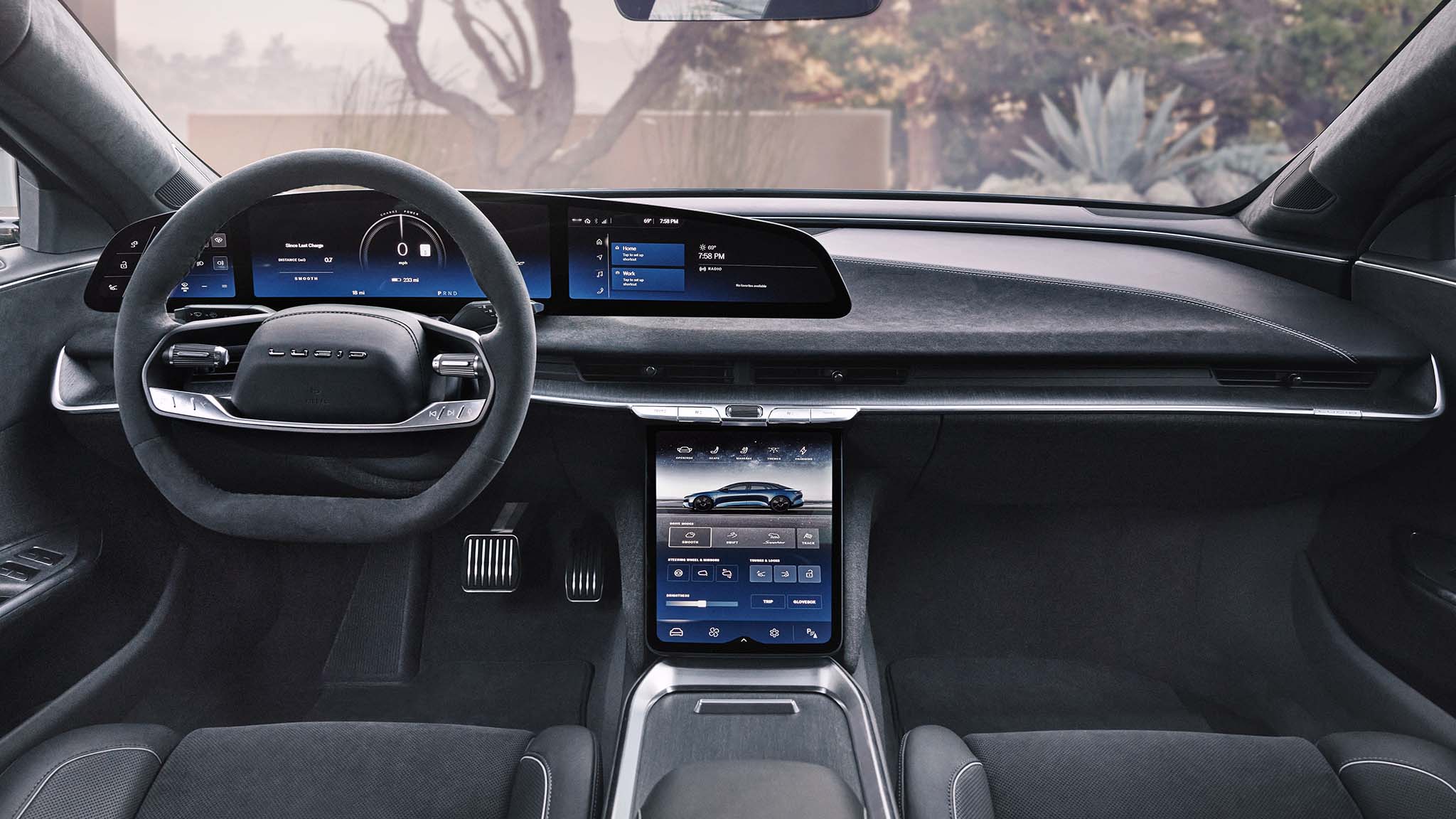 And these are just the changes you can see. Under the skin, Lucid says the Air Sapphire has retuned adaptive dampers, a unique electric-power steering and brake calibration, and a completely revamped traction control system designed to work in tandem with the car's torque-vectoring capabilities, ensuring all 1,234 horsepower is available the moment it's called upon.