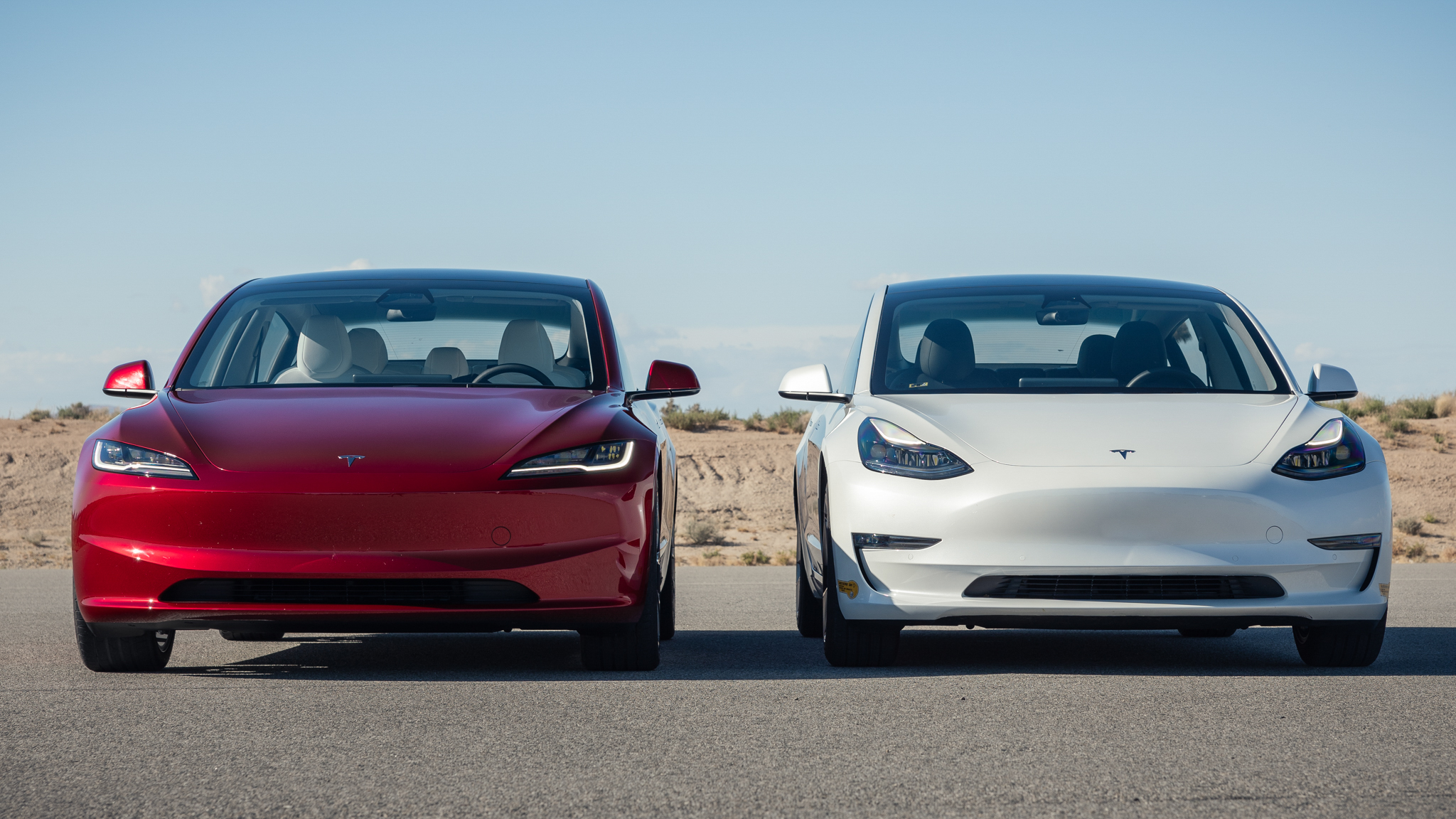 A couple of things to note: Typically, for these comparison tests, we have instrumented figures for both models. However, Tesla only provided us with Highland Model 3s, leaving us to rent our own old Model 3 for comparison. That rental was set to Chill Mode—and the owner locked it that way, so we couldn't take it over 90 mph or unleash peak acceleration, precluding full instrumented testing. Additionally, our comparisons are great tools for cross-shopping current competitors, but besides lacking comprehensive test figures, this is the rare MotorTrend comparison conducted between a new model and the car it replaces. It's instructive to compare what we saw and how we felt in driving the Model 3s back to back, as it best shows how changed the Highland really is.