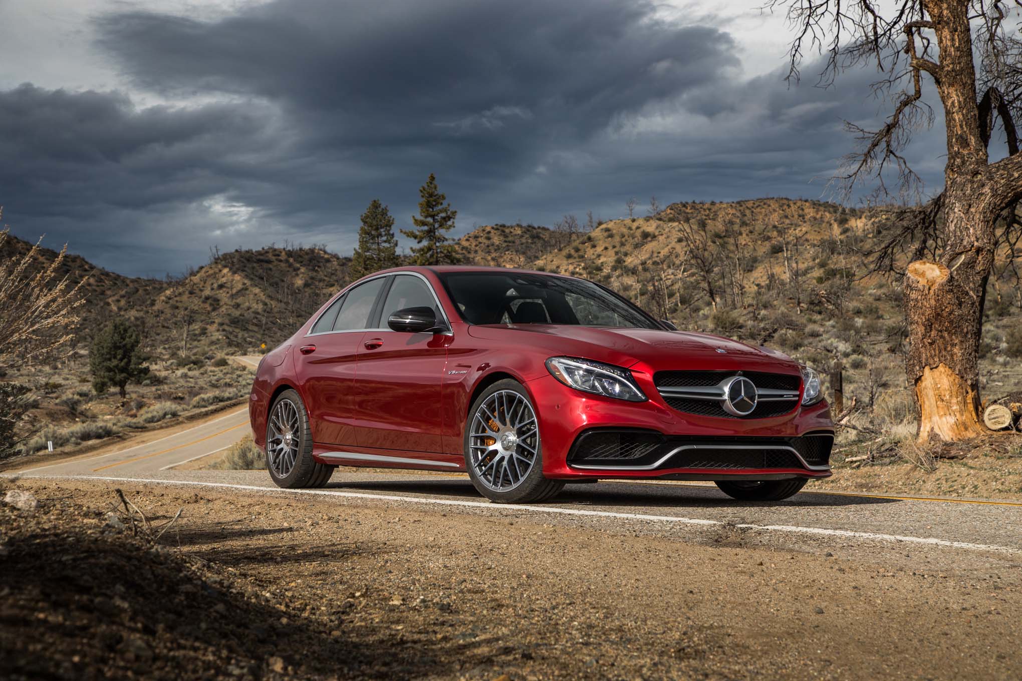 At 503 hp, the V-8's peak output is a rounding error less than the best-in-class Alfa Romeo's, but its two extra pistons and 1,091-cc additional displacement help it best the Italian V-6's maximum twist by 73 very sonorous lb-ft of torque. Although the AMG is almost 150 pounds porkier than the next-heaviest Cadillac, the brute's underhood muscle put it in the thick of the quarter-mile drag race - and still delivered the best city fuel economy. We are slightly disappointed that for AMG duty Mercedes replaced the torque converter in its seven-speed automatic with a multi-plate clutchpack whose programming allows far too much slippage and not enough smoothness off the line. The torque converter would have been way better.