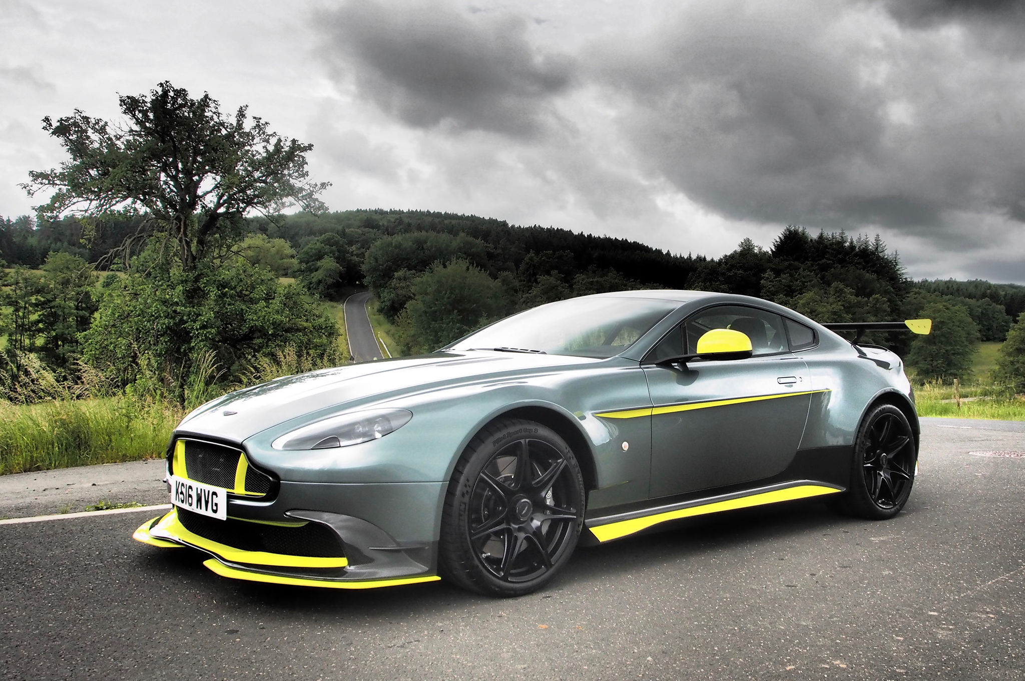 NURBURG, Germany—This is not the infamousNordschleifeGreen Hell, but the tarred, broad catwalk that is Nürburgring's Grand Prix track. We're here with the all-new Aston Martin V8 Vantage GT8 in green-and-lime flavor and an orange-over-white V12 Vantage S. Both were born in the surrounding Eifel Mountains where Aston Martin's deputy R&D chief Wolfgang Schuhbauer honed the limited-edition models.