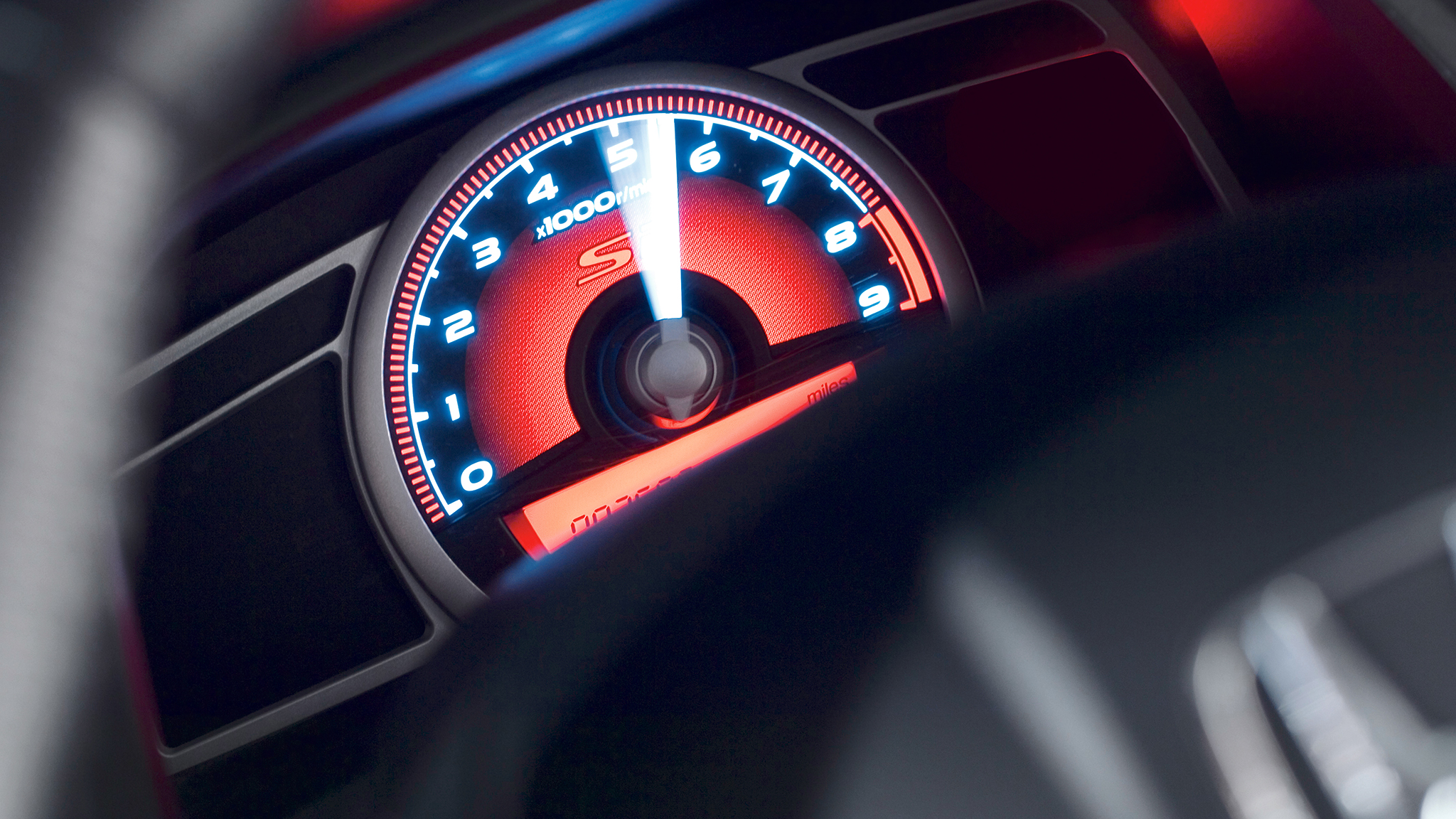 "On the Si, I love the rev-limiter warning that flashes alongside the digital speedo. Cool."