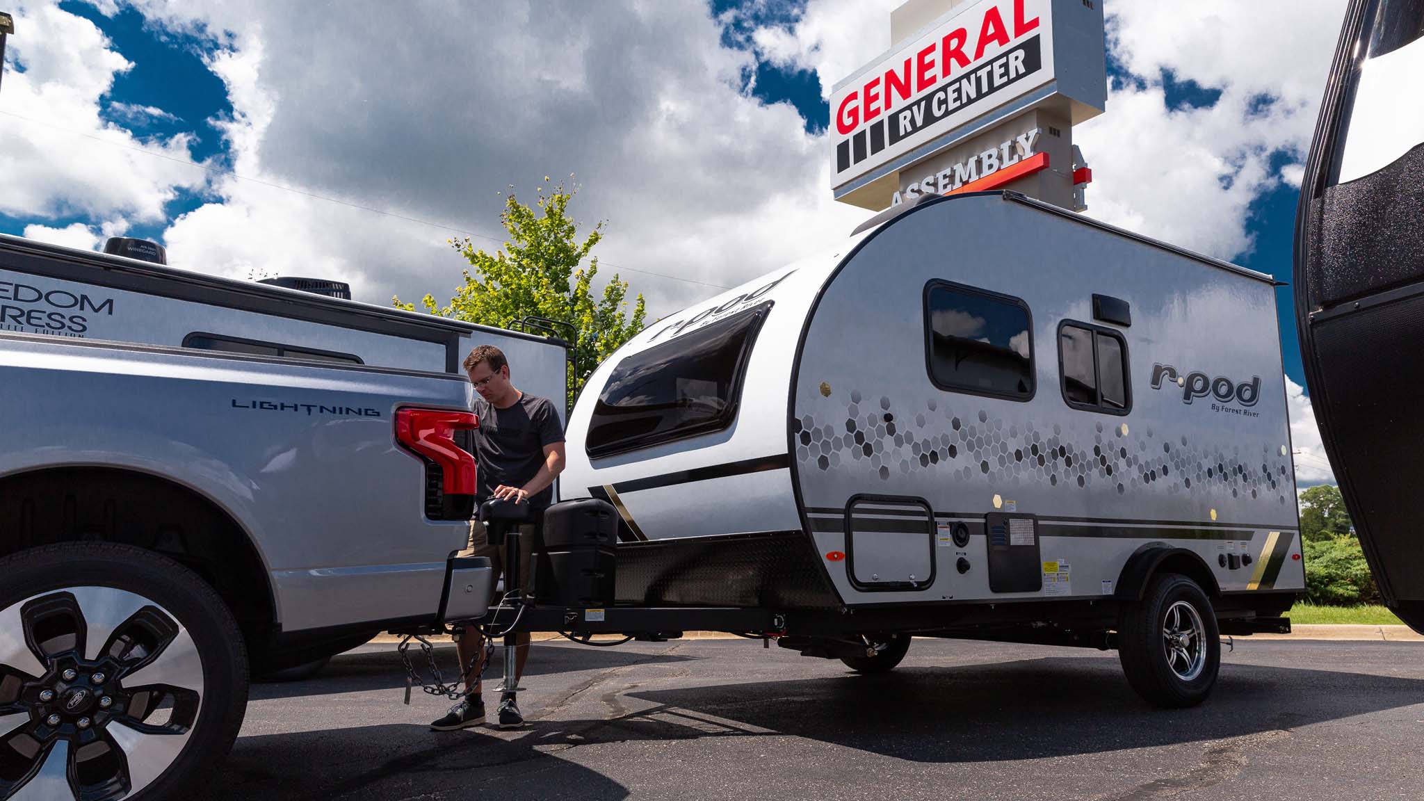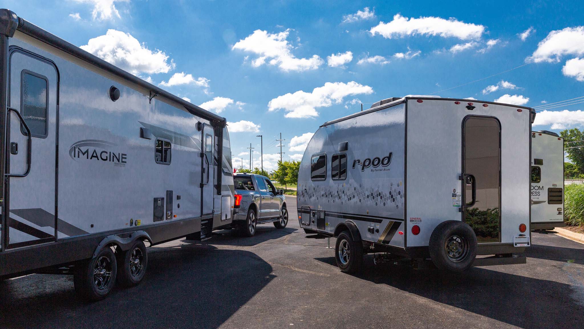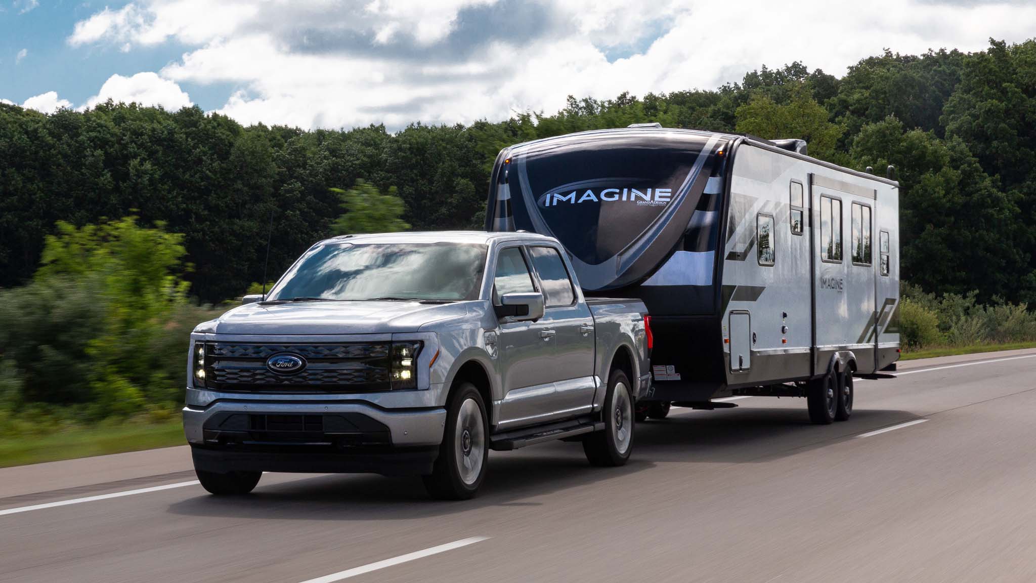 We towed 3100-, 5300-, and 7200-pound travel trailers with Ford’s electric truck and didn’t get very far from home.