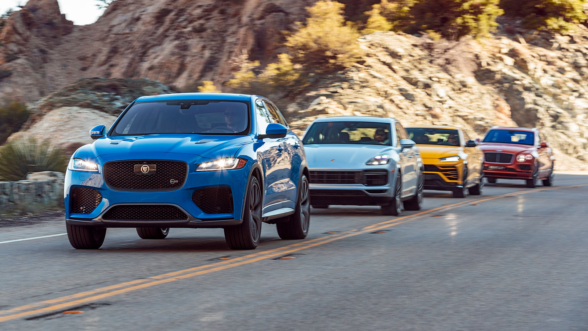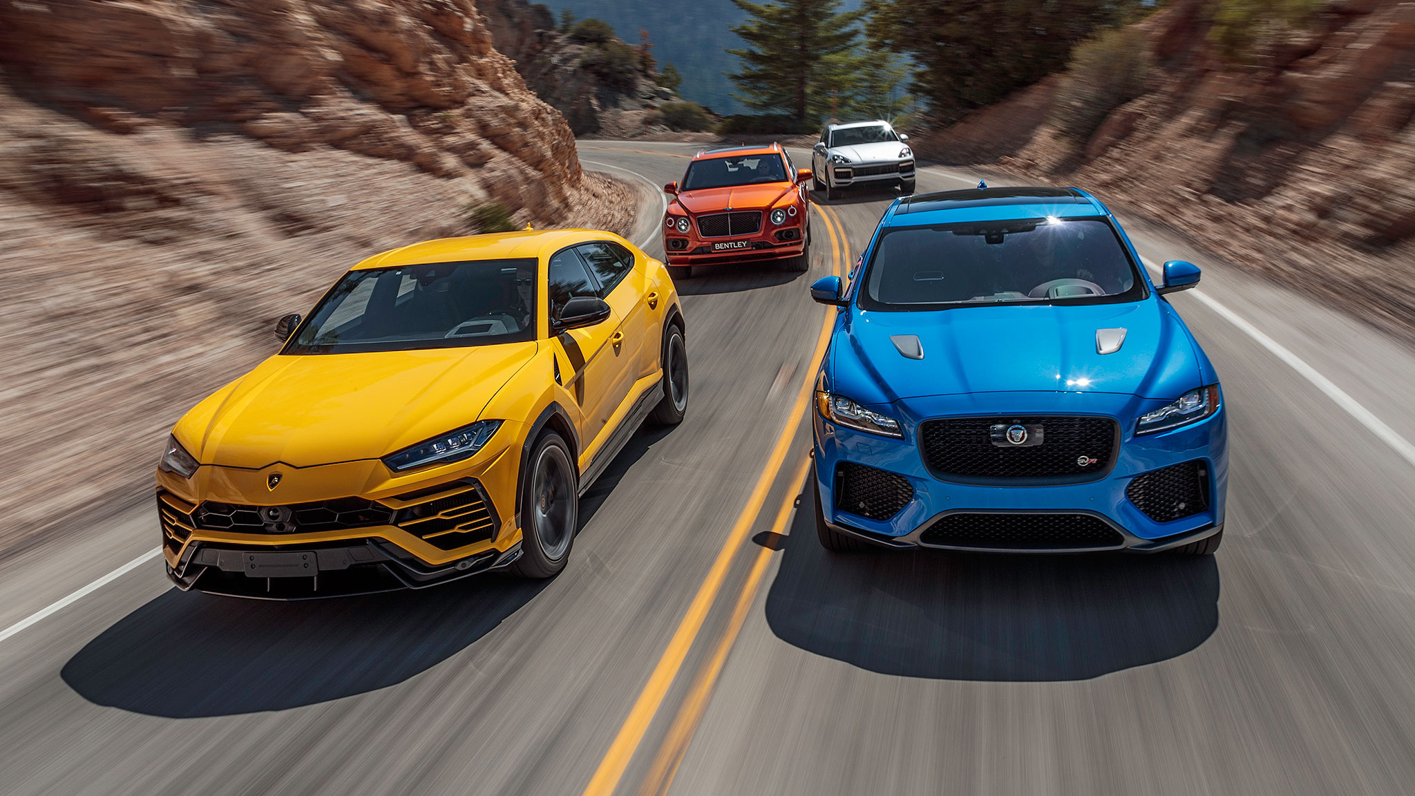 The Cayenne Turbo, Urus, F-Pace SVR, and Bentayga Speed square off for a ticket to Best Driver’s Car